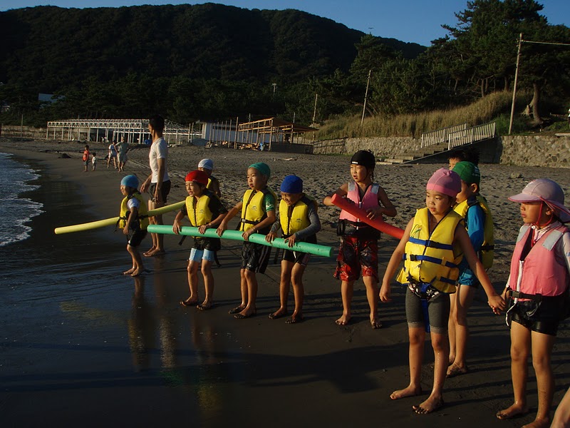 『泳ぐ』ことに自信が持てるようにいろんなお助けツールで果敢に波立つ海に挑みました。