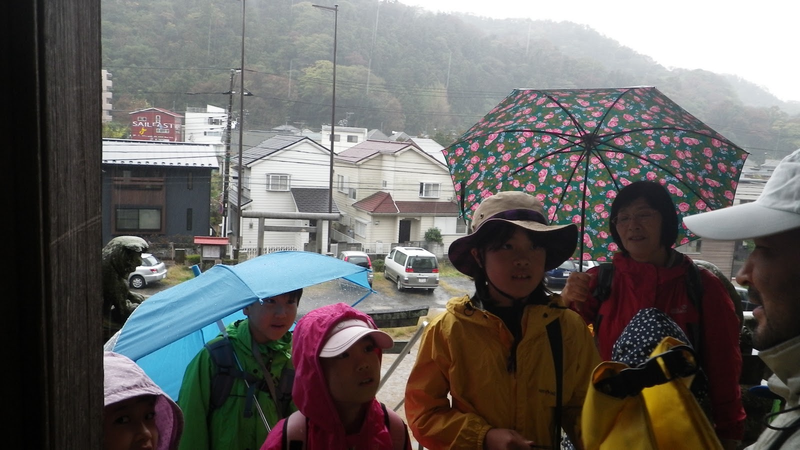 帰り道、より一層強くなった風雨の中、みんなで元気に歩きました。