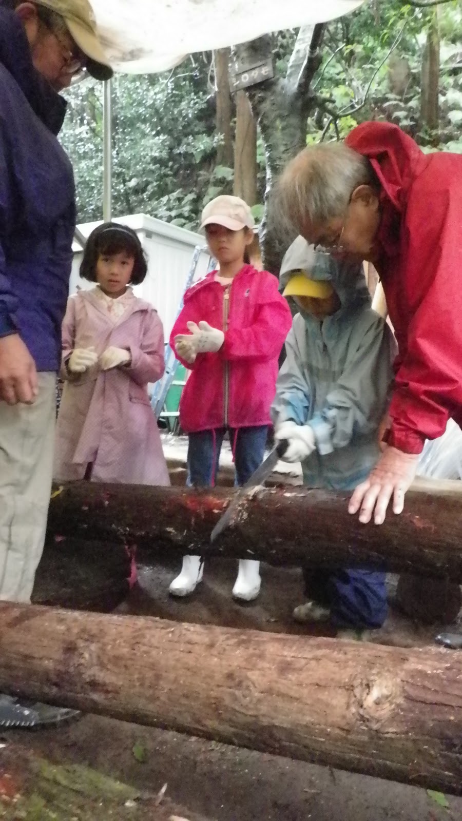今回は森戸川村の清水村長に林道の自然散策の案内をお願いしておりましたが、雨のため林道がぬかるんでいて崖崩れの恐れもあるということで森戸川村村内での活動となりました。