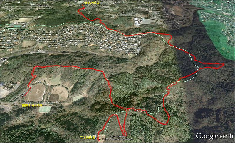 赤い線がみんなが走った南郷上ノ山公園~沼間小学校の往復コースです。