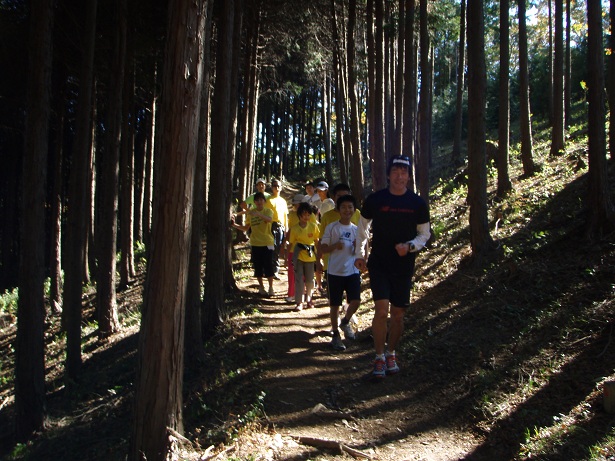 コースでは日差しが木々の間から差込みとても暖かく、半そでTシャツ姿で走る元気な塾生も。