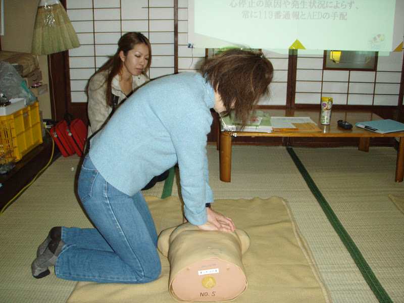 CPRとAEDの実習ではガイドライン2010に沿って行いました。