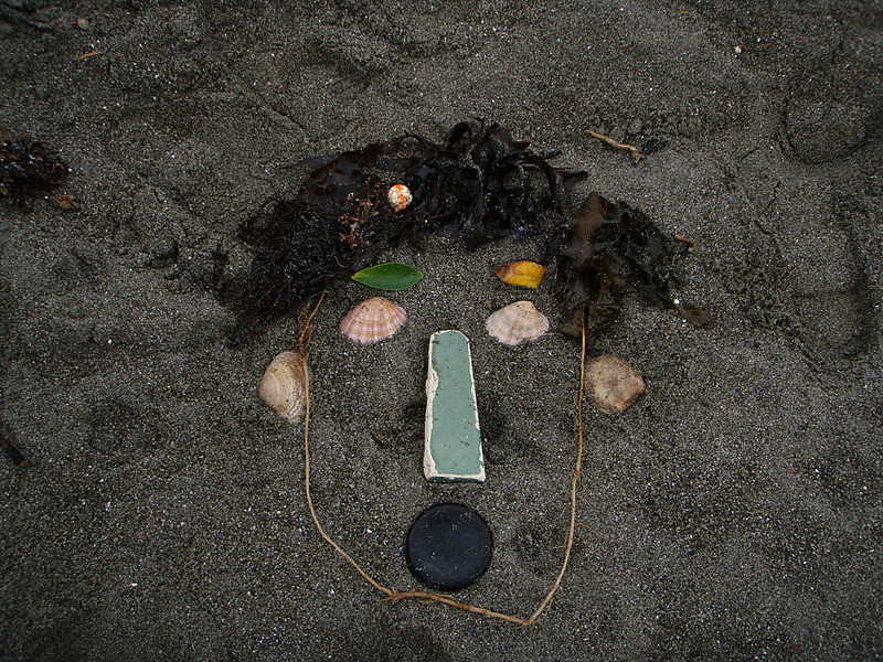 また、「表現法」の体験として漂着物を使った「海顔」を作りました。