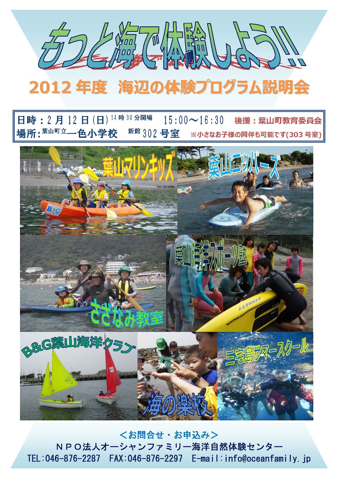2月12日(日)に2012年度の葉山キッズプログラム説明会を開催いたします。