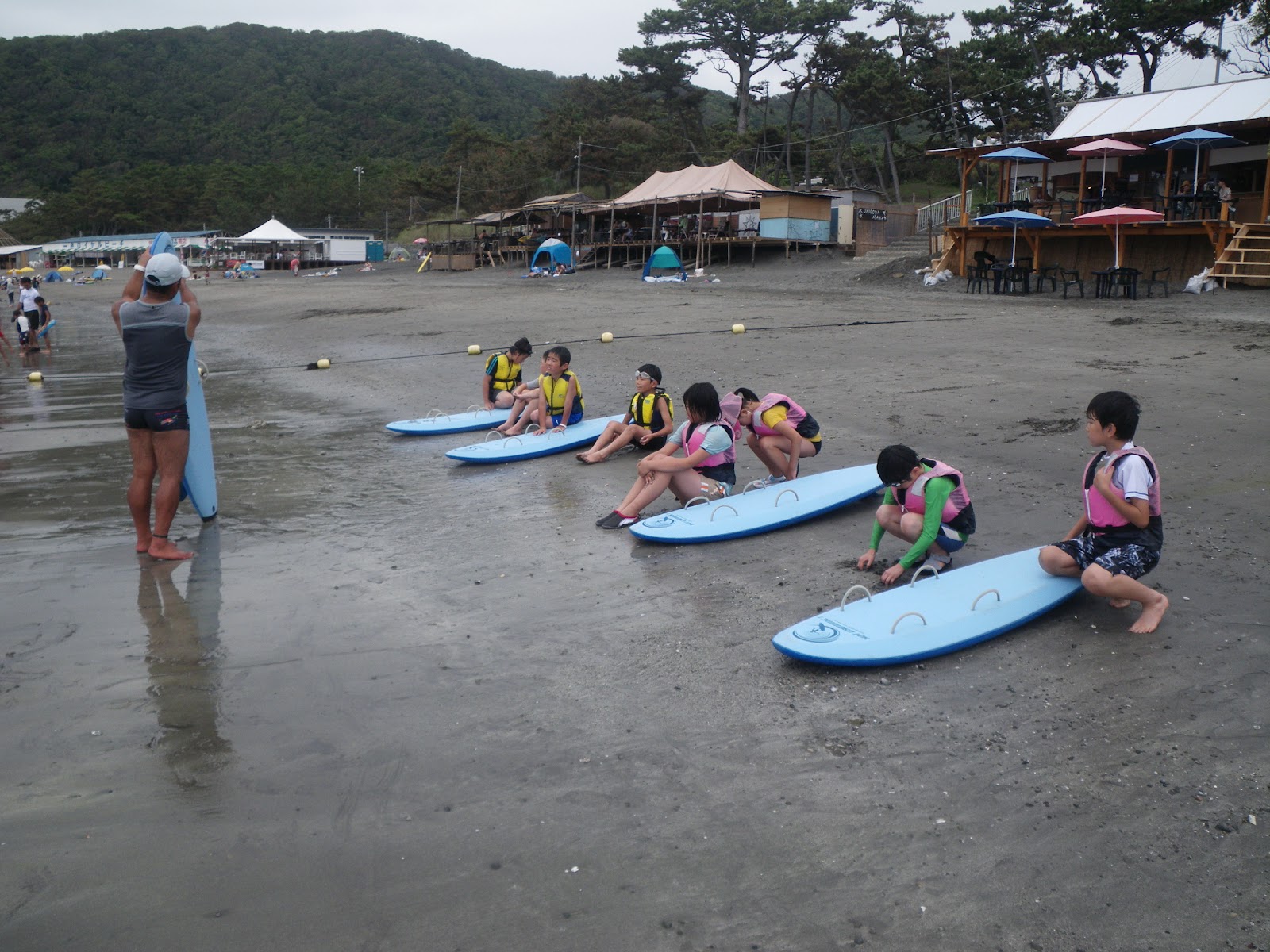 体重の軽い下級生のお友だちは、ボードの上に立って波乗りもできました!