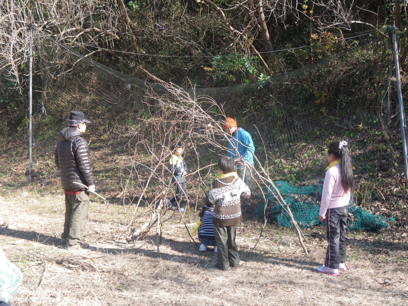 そしてまわりの枯れ木を集めておうち作りです!