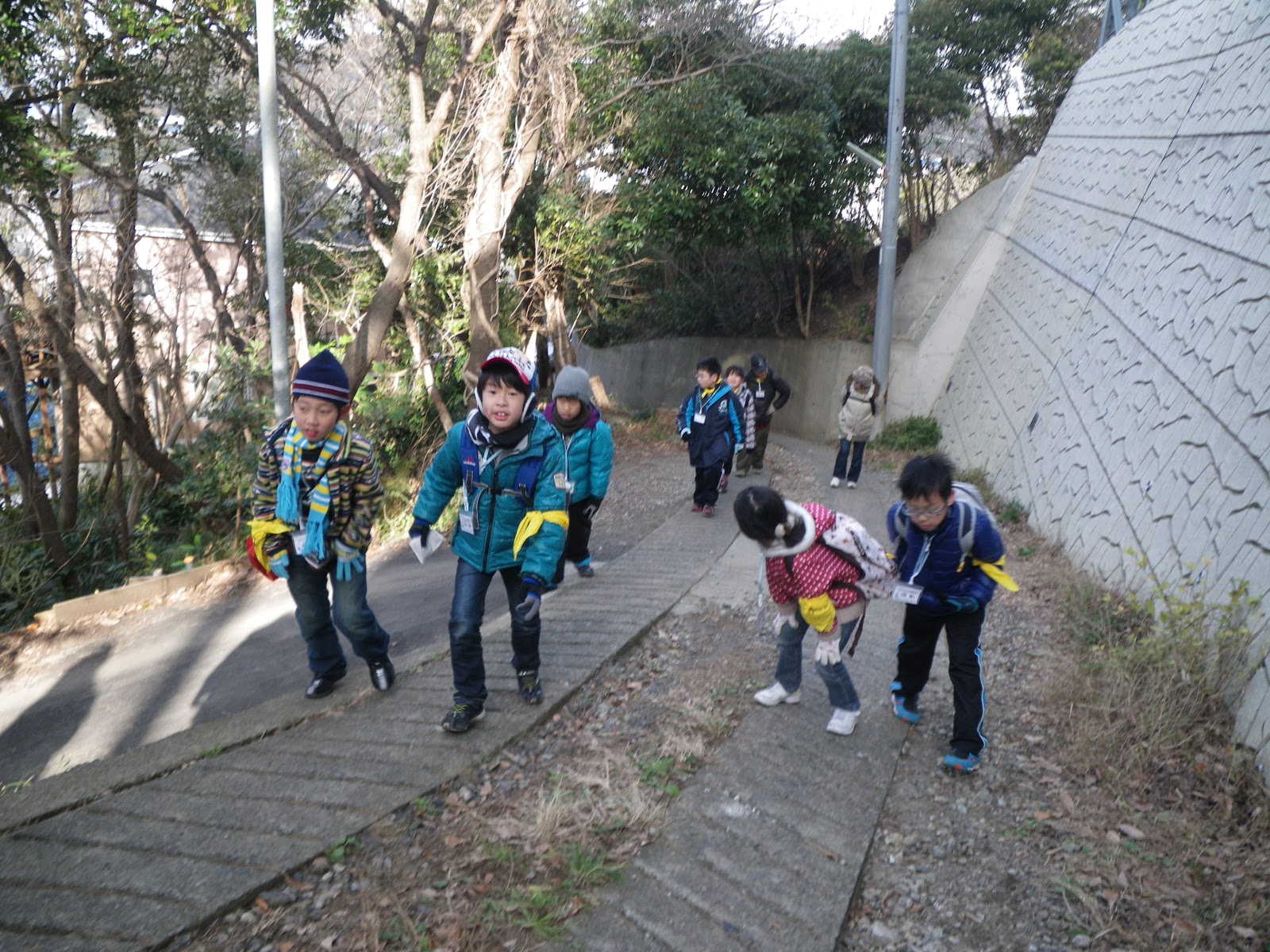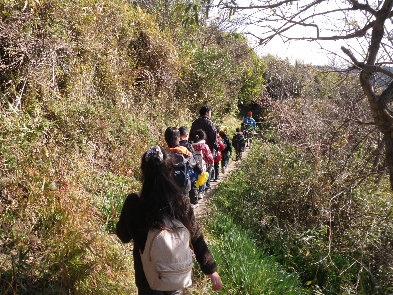 急な坂道やほそい一本道を歩きます。