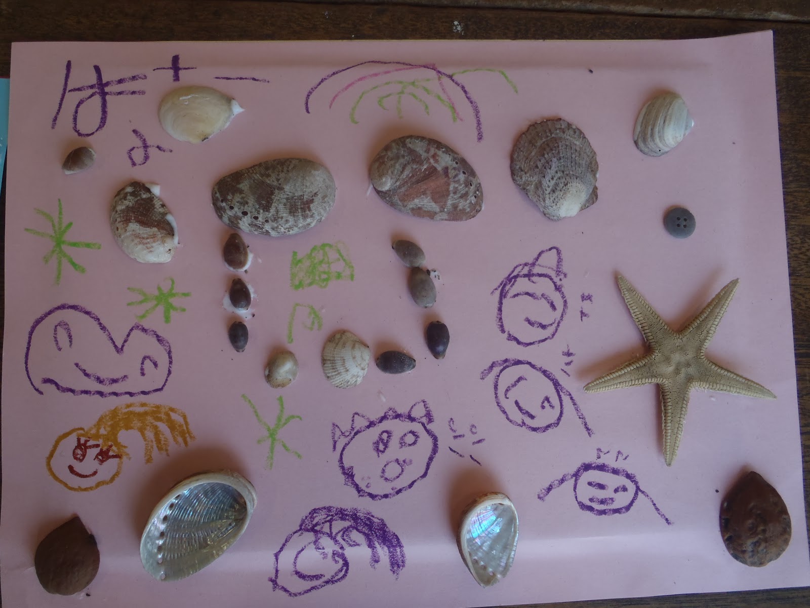 貝がらを並べたり、ビーチグラスを重ねたり、
