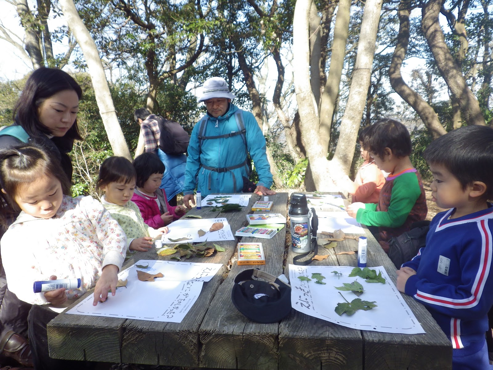 豊かな植物に触れながらたくさんの落ち葉を見つけていきます。