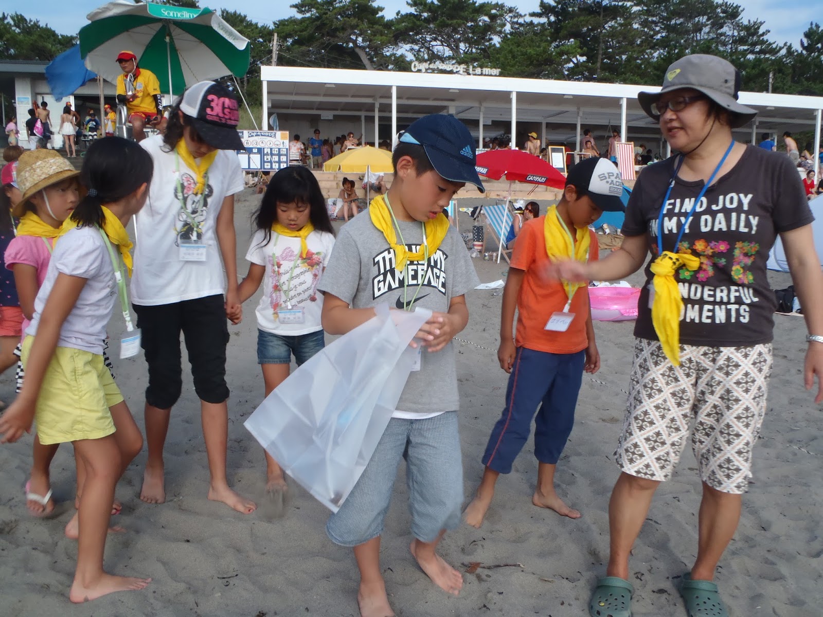 帰りは、追い風に乗ってあっという間に大浜海岸まで戻ることができました。みんなで協力して後片付けをして、シャワー・着替え、夕食のBBQのために、海の家に向かいました。さすがに元気なネイチャーキッズたちも、言葉少ないところをみると少し疲れが出てきているのかと思い、シャワー後はゆっくり休息をとりました。その後、海岸清掃に協力をしました。