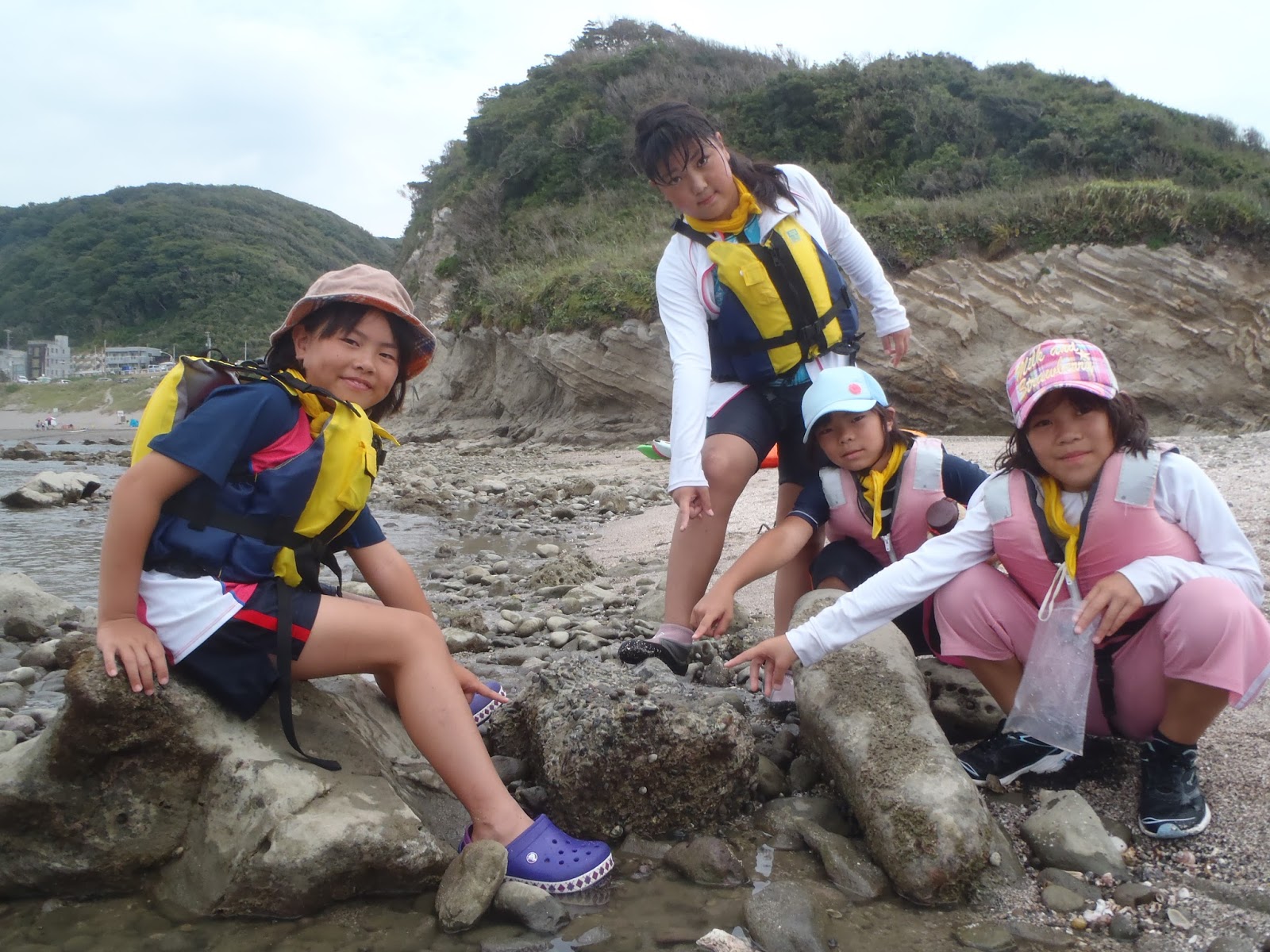 今日の活動は、シーカヤックで長者ケ崎海岸から対岸の半島へ漕ぎ出で、探検しようというものです。キッズたちは、シーカヤックは上手に漕げたでしょうか?半島探検で発見したものは?
