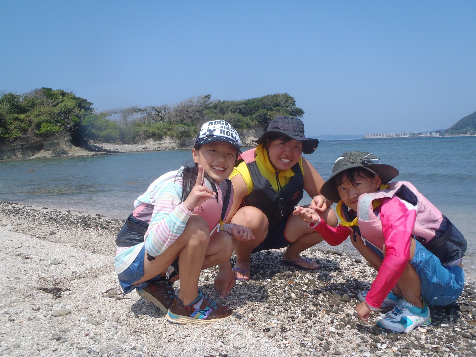 2日目は、シーカヤックで対岸の長者ケ崎へ渡って、スノーケリングで魚の観察をし、夜に作成するオリジナルマリンクラフトの材料になる貝殻を拾い、半島探検をしました。