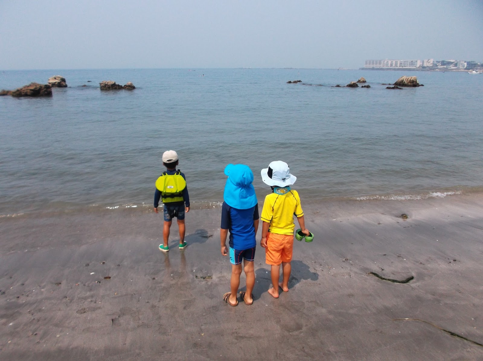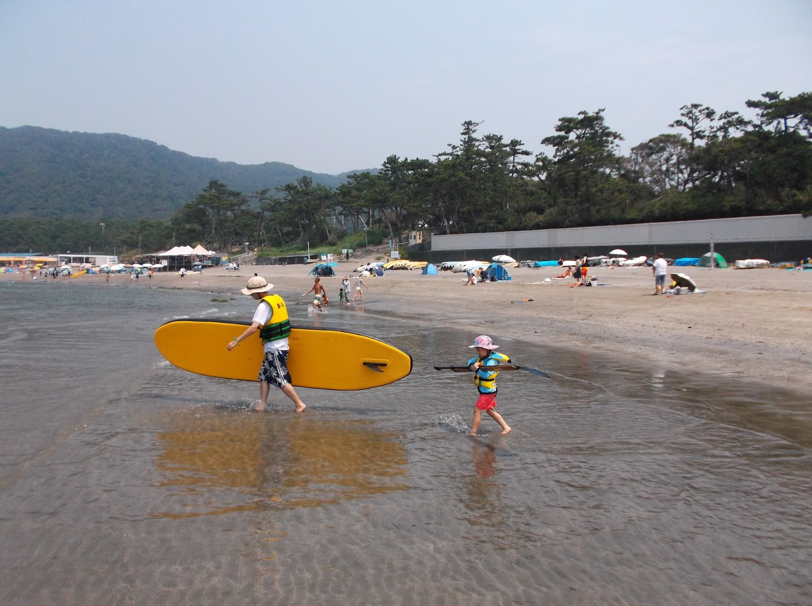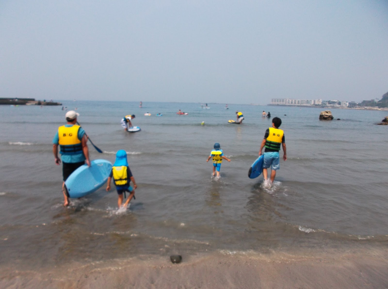 子どもたちだけでなくパパやママも早く海に入りたい!モードのさざなみ教室スタートです。