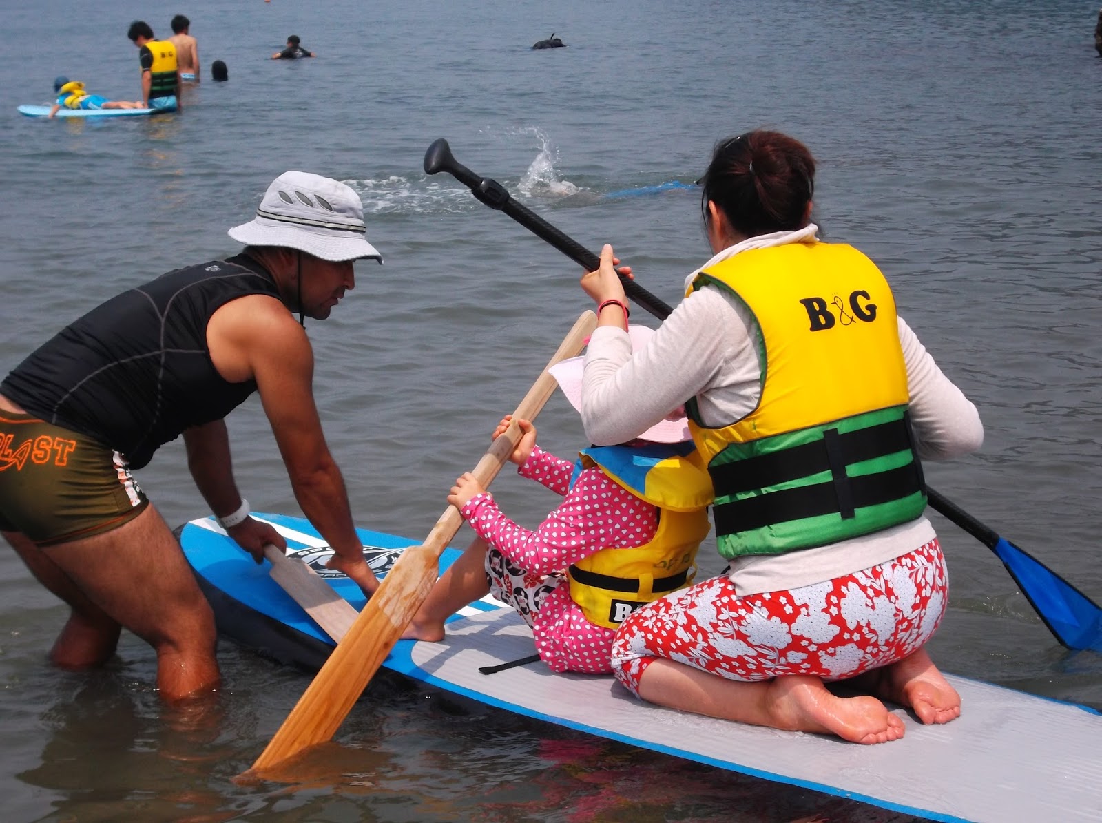 8月のさざなみ教室:ボードに乗って漕いでみよう!
