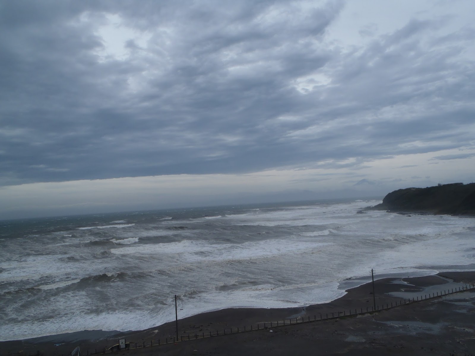 昨日まで遊んでいた海が、こんなにも大荒れになっているのにはびっくりでした。自然の力はすごいですね。遠くに富士山が顔を出しているのも印象的でした。