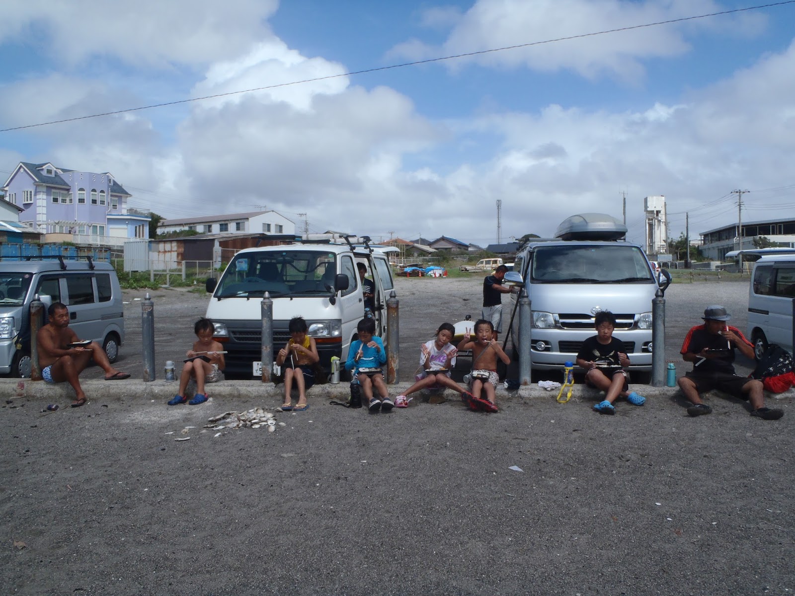 「さあ、海へ行こう!」 台風のうねりが若干入ってきているので、海は濁ってきていてスノーケリングやシーカヤックは難しいかったのですが、ボディーサーフィンを楽しみました。