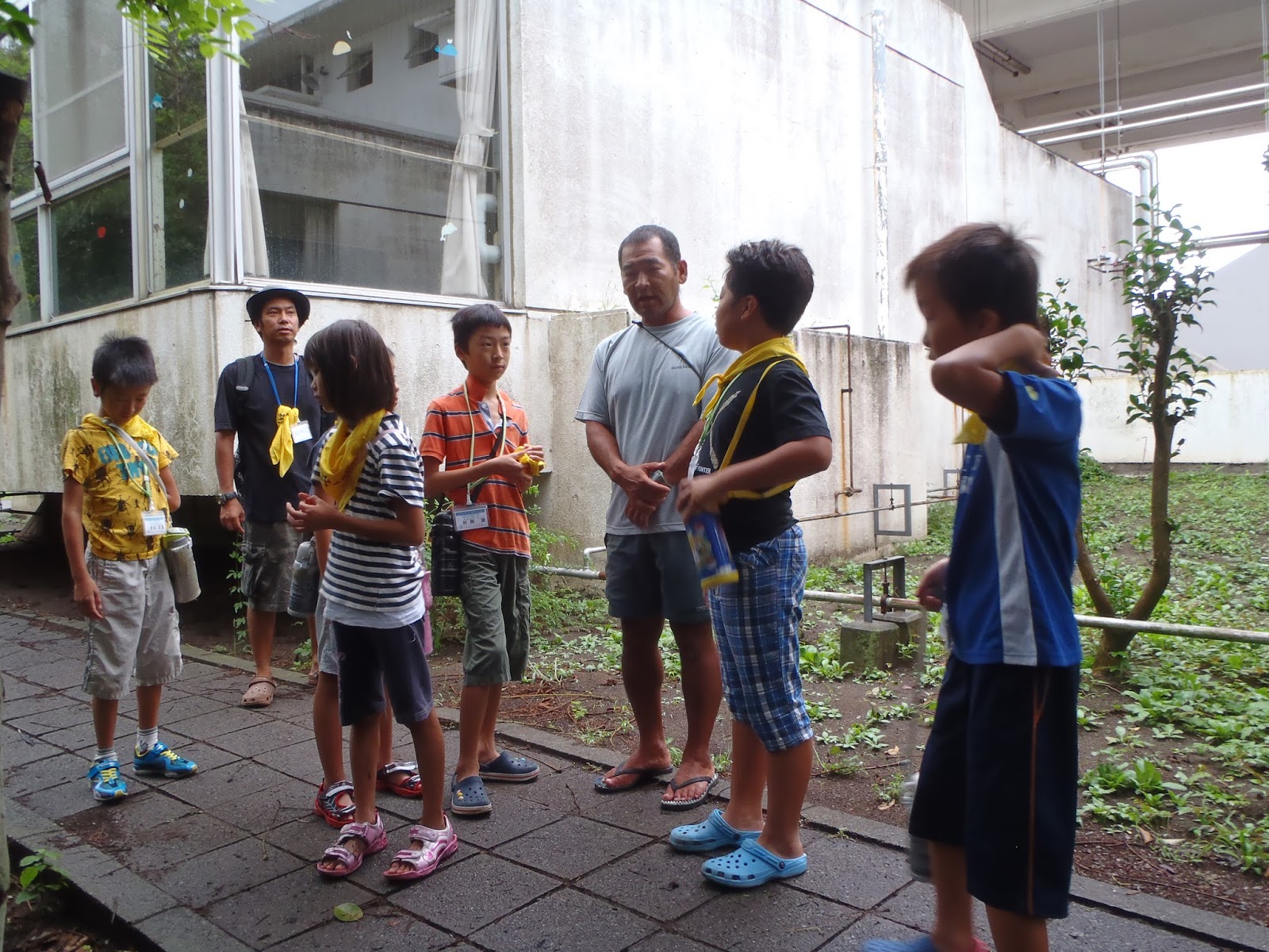 朝食前のお散歩は、昨夜行けなかった展望台まで。「お腹がすいた」との声に施設に戻って、しっかり朝食を食べて、今日も活動開始です。と思って動き始めたとき、いきなり大雨が降りだしました。