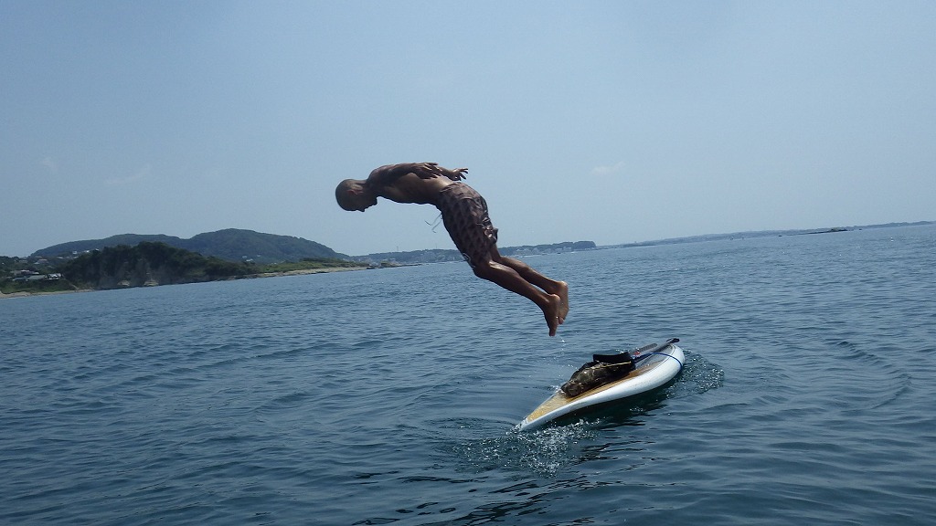 足の着かない場所でもSUPから進んで海へ飛び込んで、海の気持ちよさを満喫されていました。