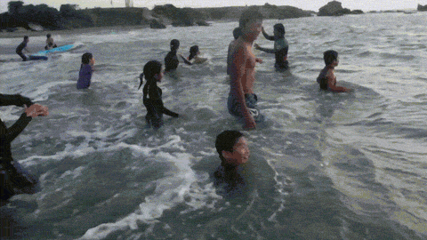 みんなで、せーのっ、で海へ!