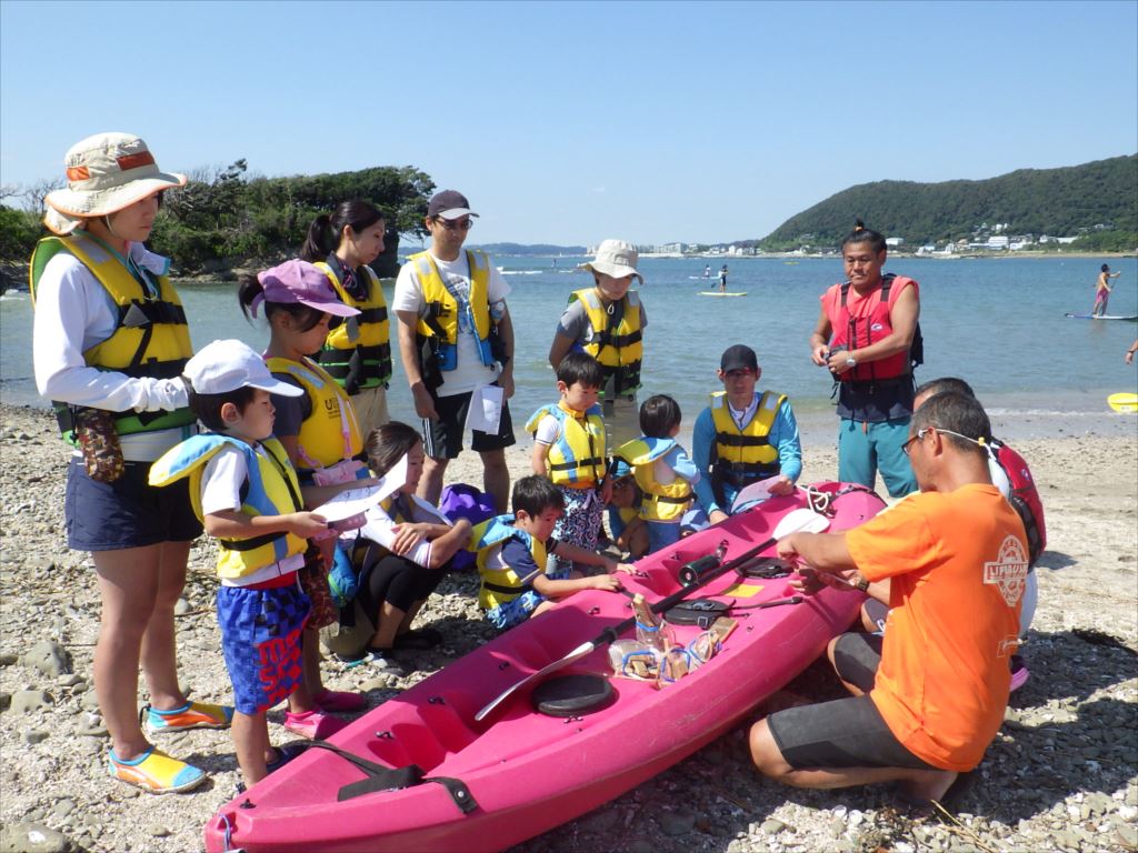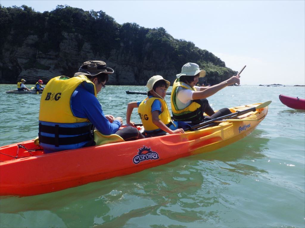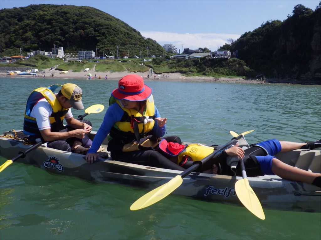 全員でパドルの漕ぎ方の練習を済ませ、ここから”シーカヤックでカッタクリ釣り組”と”磯観察”の2つのグループに分かれて活動を開始しました。