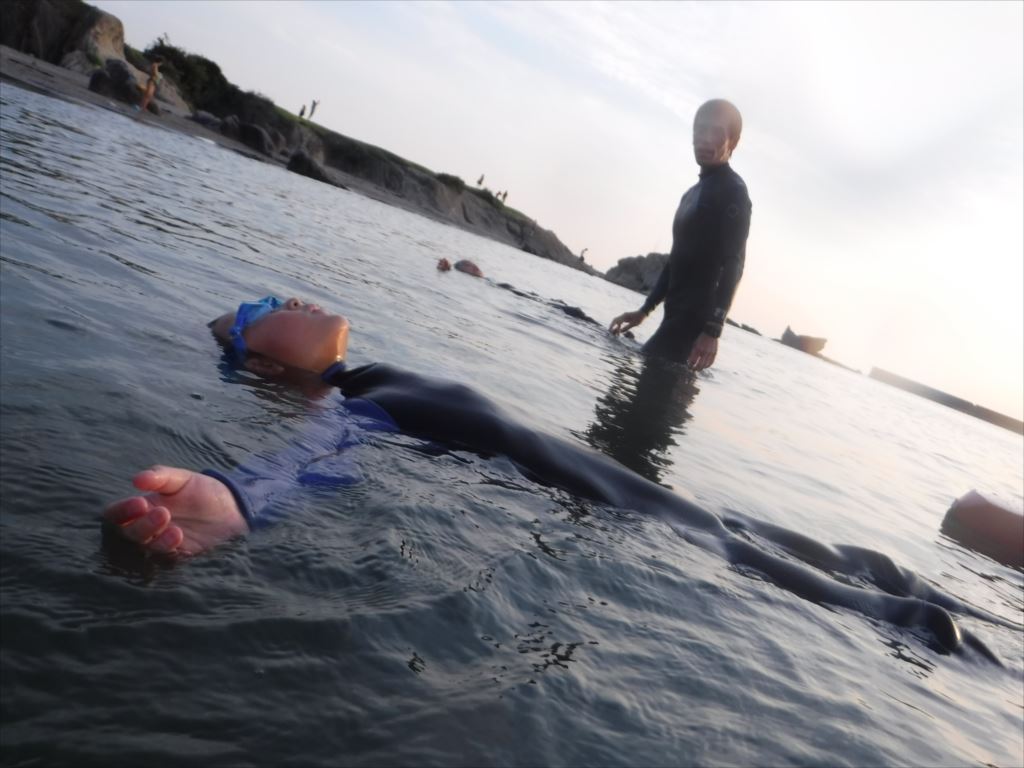 いや、でも、足のつかない沖で何かあった時にはこの体勢で休むことができるため、とても大事な技術なんです!