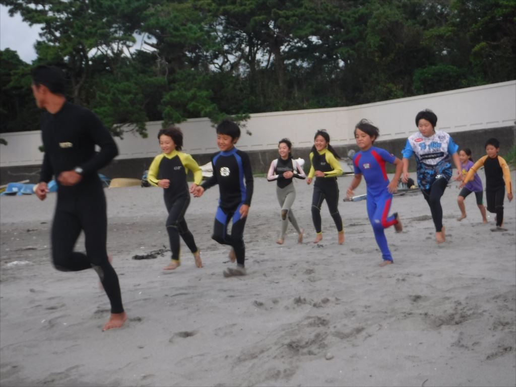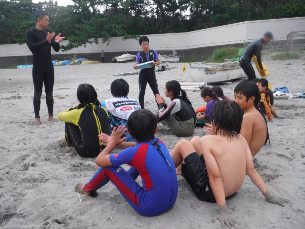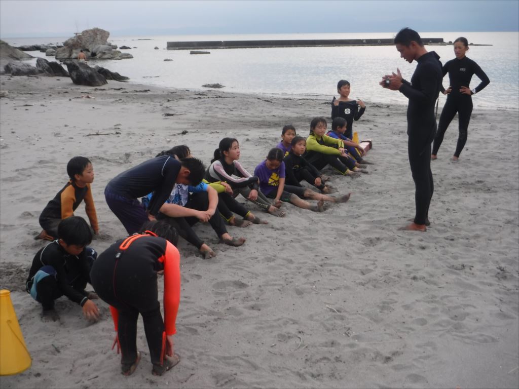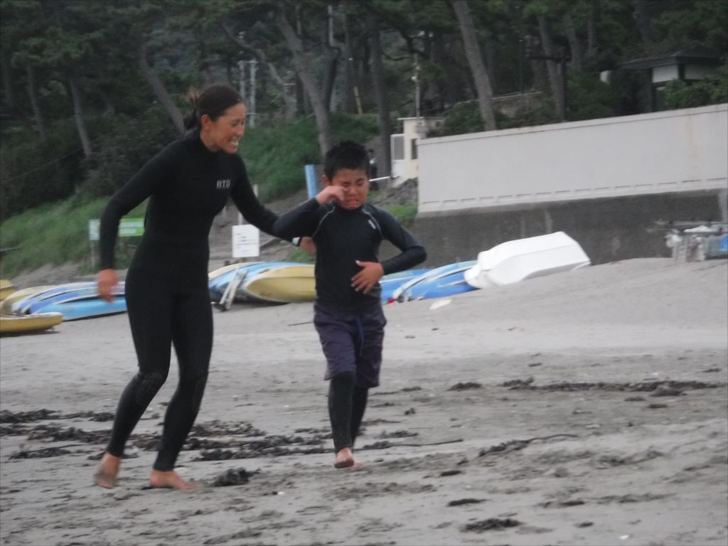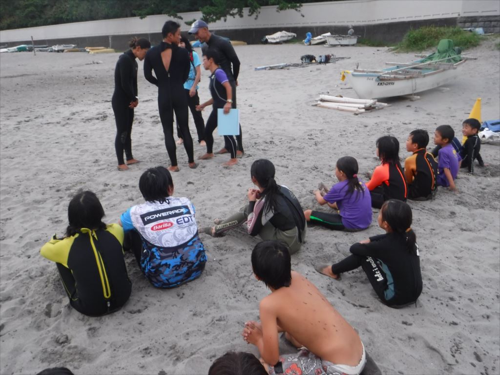 コーチのアドバイスを受け、果敢にも2名の子どもがウェットスーツを脱いでチャレンジしました!