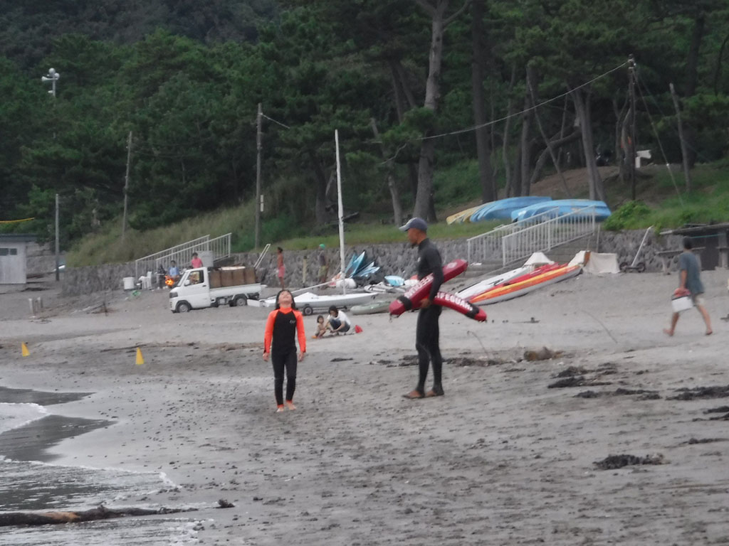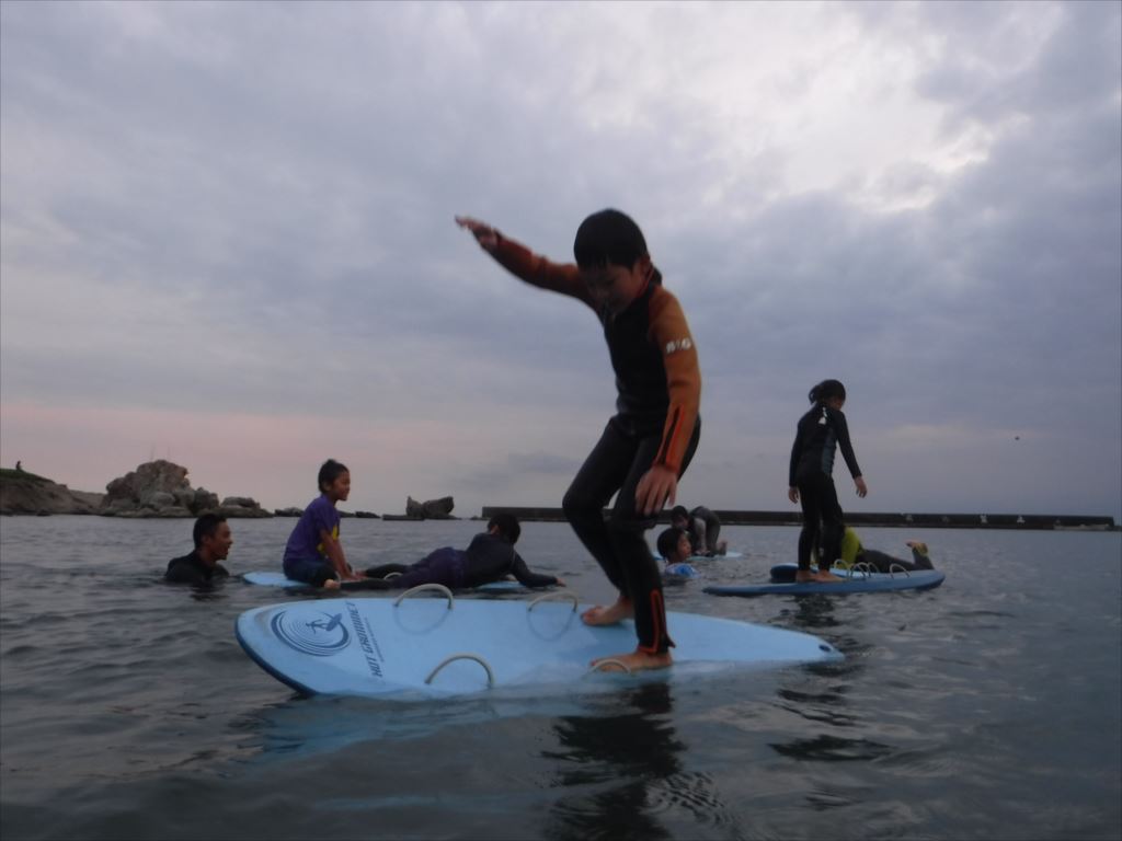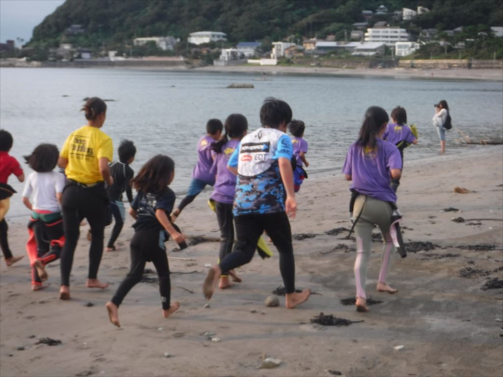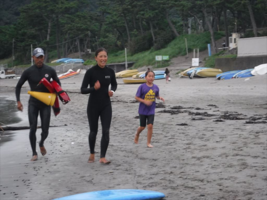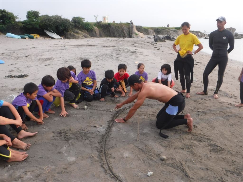 コーチのアドバイスを受け、果敢にも2名の子どもがウェットスーツを脱いでチャレンジしました!
