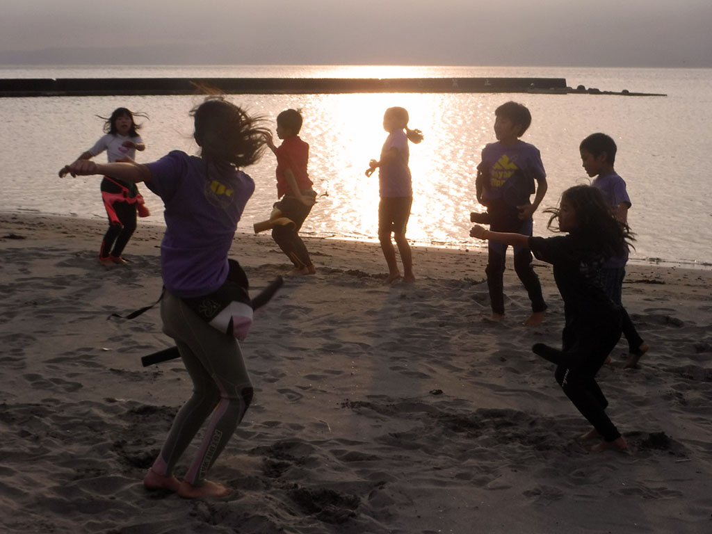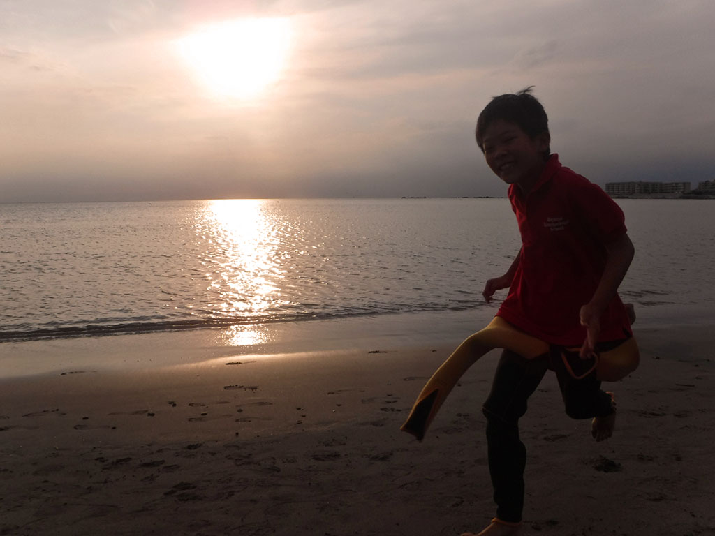 午前から吹きはじめた風は落ち着き、きれいな夕日が沈むのを見ながらの活動となりました。