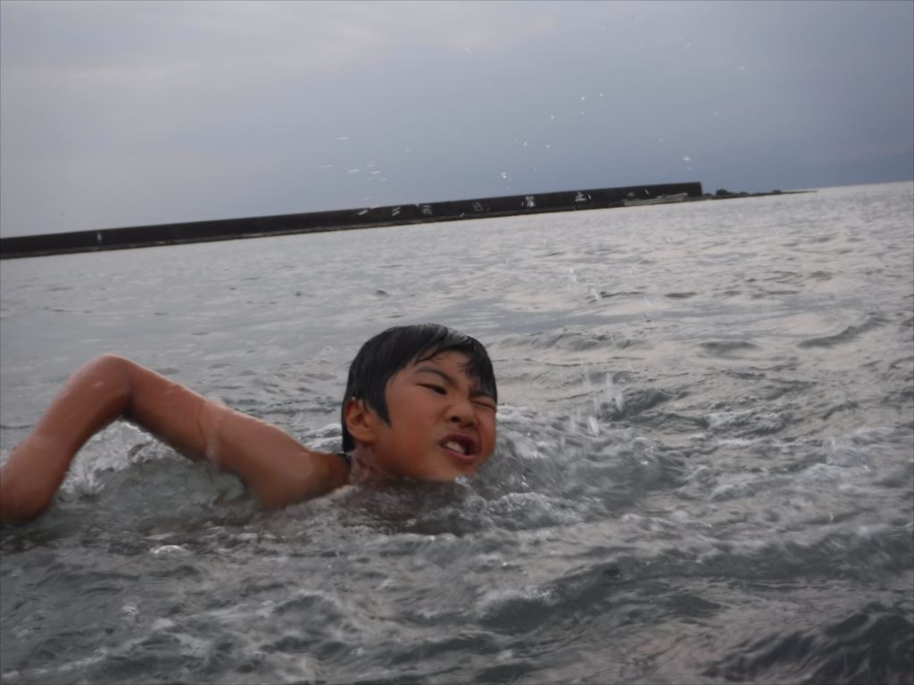 スイムの間の「寒さ」と「クラゲのチクチク」を我慢できる子はウェットスーツを脱いでいい、と許可がおりました。