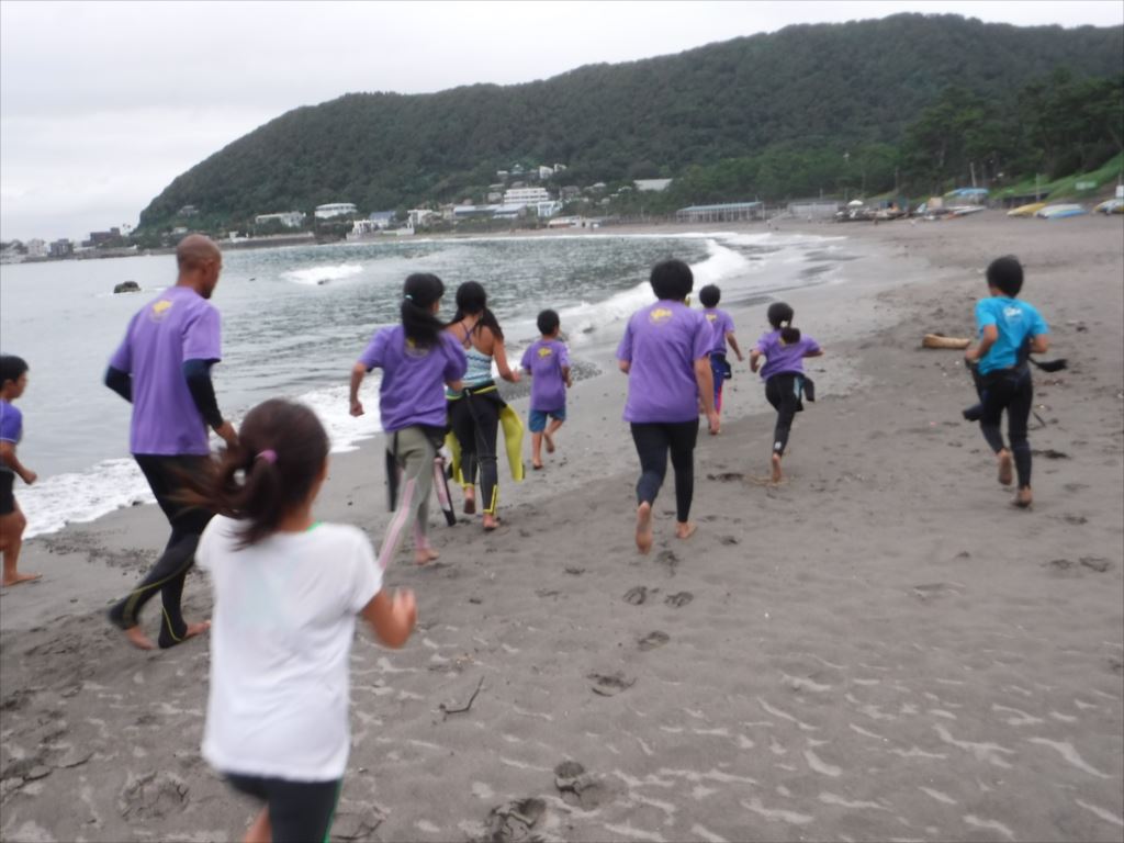 ウェットスーツを着ていてもへっちゃら、全力で走ります。