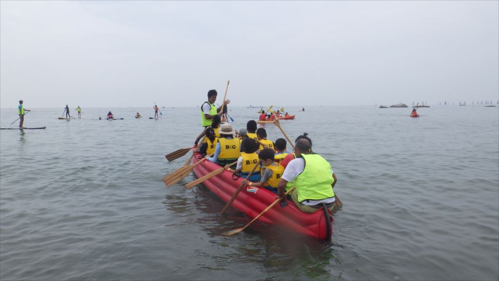 フェスが開催された大浜海岸には多くの家族が訪れ、マリンスポーツやワークショップや
