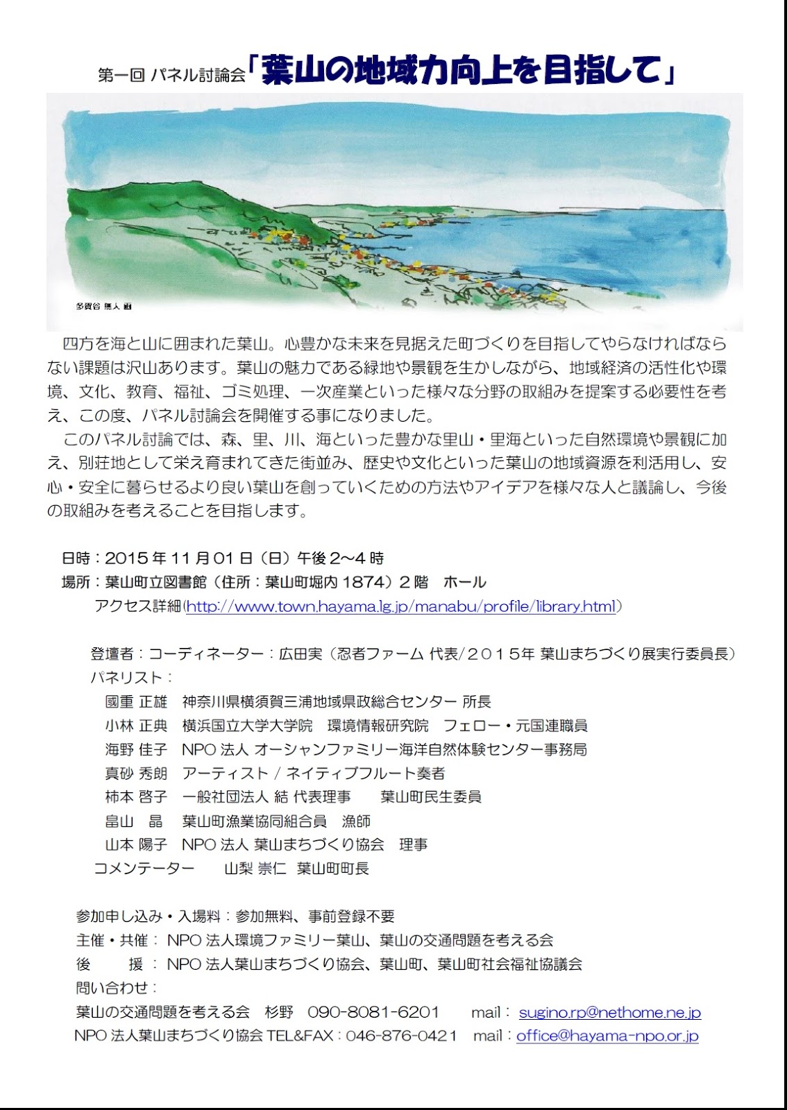 11/1(日)「葉山まちづくり討論会」に海ママが登場!