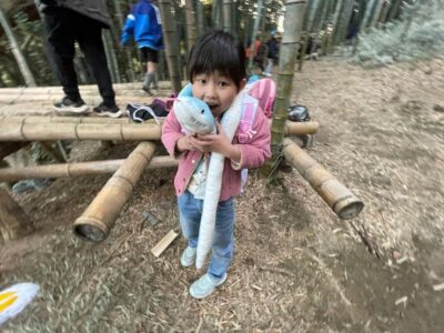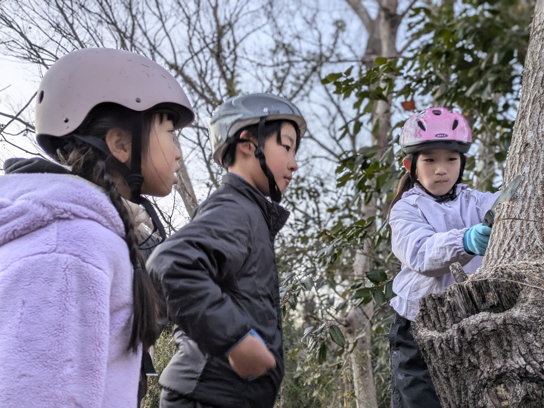 今日の「葉山キッズschool:金曜クラス」は、シイタケを育てるためにクヌギの木を伐採しました!