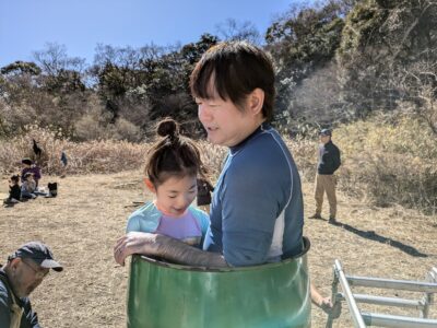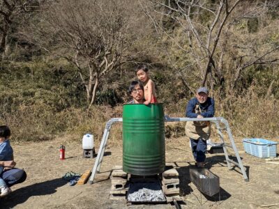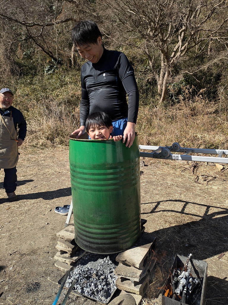 【ファミリー教室:日】ポカポカドラム缶風呂!2025-02-09今月のファミリー教室は「ドラム缶風呂&秘密基地作り」!朝は冷え込みましたが活動中は最高の天候に恵まれ活動することができました!薪拾いから着火、湯沸かしと100L以上の湯を沸かし、大変さと同時に現代のお風呂システムへのありがたみを感じました。 来月は今年度ラスト!お楽しみに!