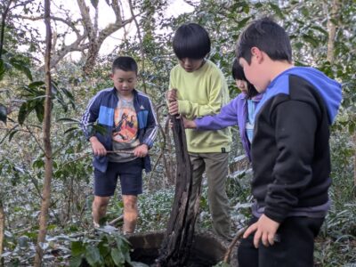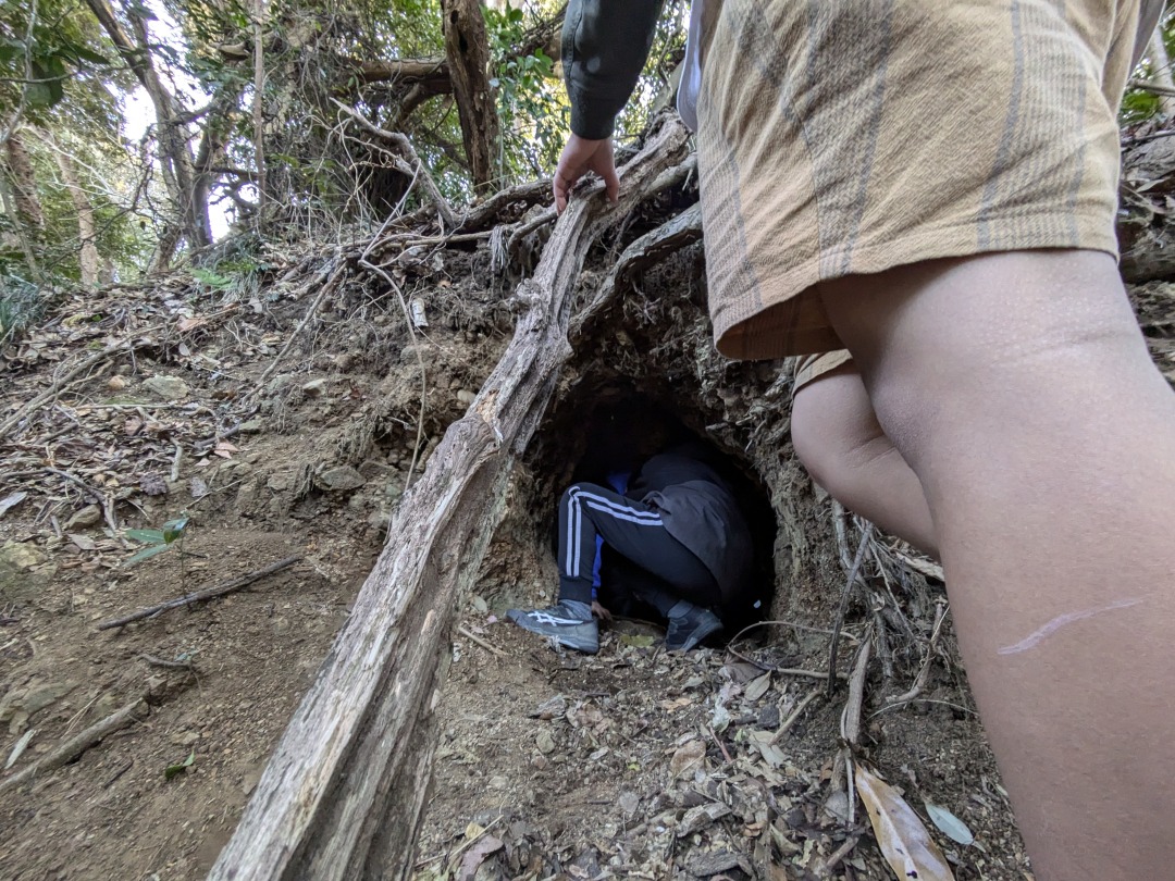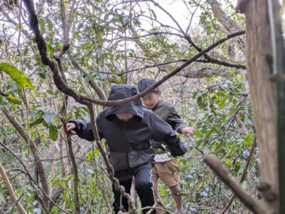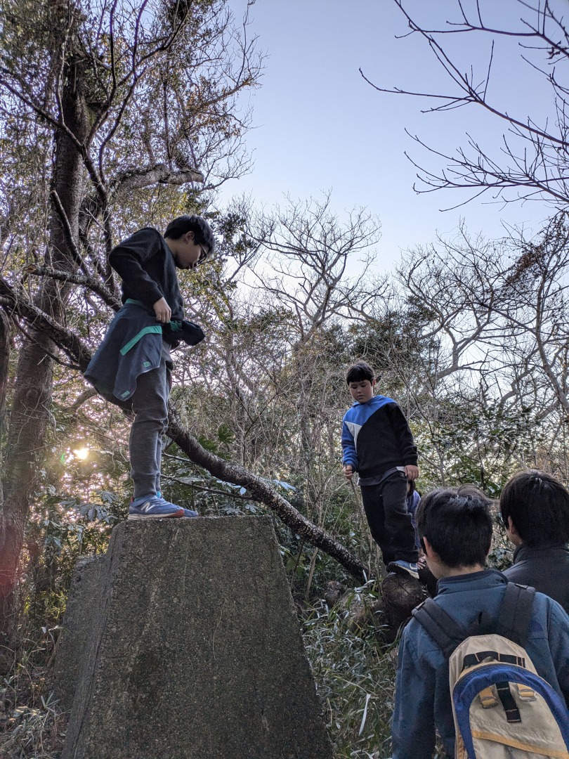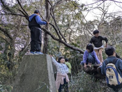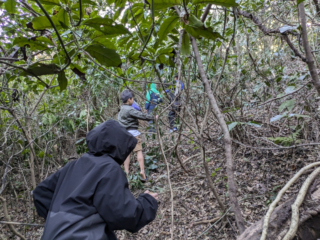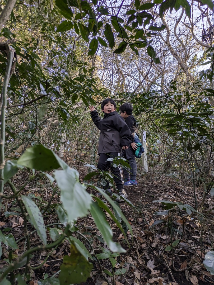 【葉山キッズ:火曜】戦争遺跡!2025-02-11今日の「葉山キッズschool:火曜クラス」は、峯山の戦争遺跡を見に藪をかき分けて歩きました! ビジターセンターに集合。 出発。 峯山。 なぞの横穴を発見! 戦時中の何かの建物跡。 砲台の跡。 久留和グランドを目指して、藪をかき分けて進みます。 秋谷側をまわって、帰ります。 また来週!