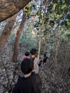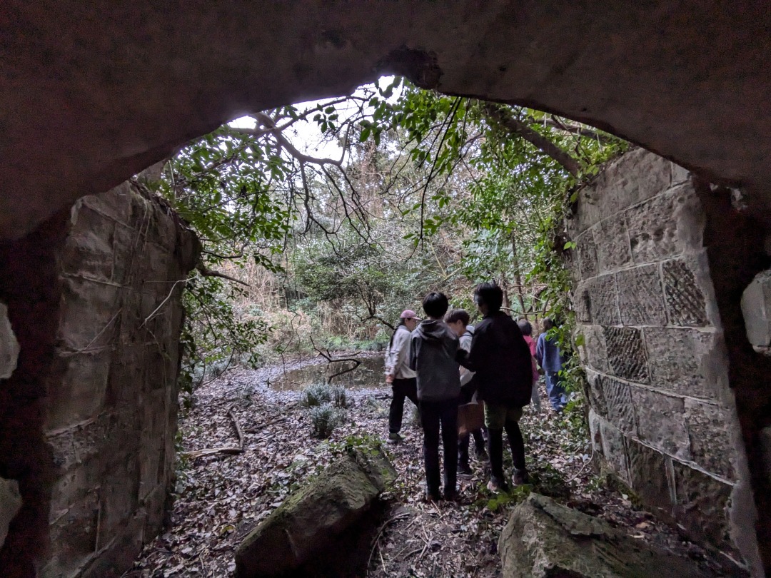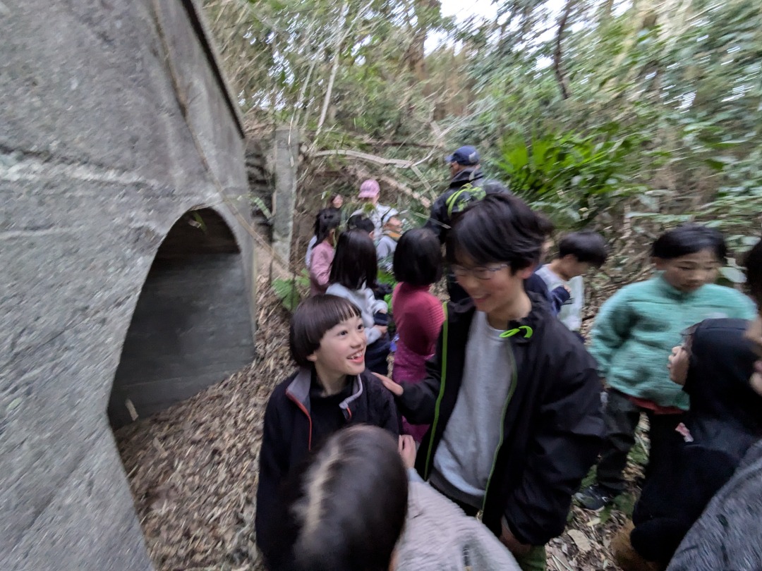 【葉山キッズ:木曜】砲台跡を探検!2025-02-13今日の「葉山キッズschool:木曜クラス」は、戦時中の砲台跡を探検しに行きました! 立石公園に集合。 長いトンネルをぬけて、山へ。 藪をかき分けて進むと。。 巨大なコンクリートの建造物。 恐るおそる中へ。 コウモリも。 道へ戻り、関根川沿いを通って戻ります。 けっこう距離があったので走るのも大変でしたが、おもしろかったね! また来週!