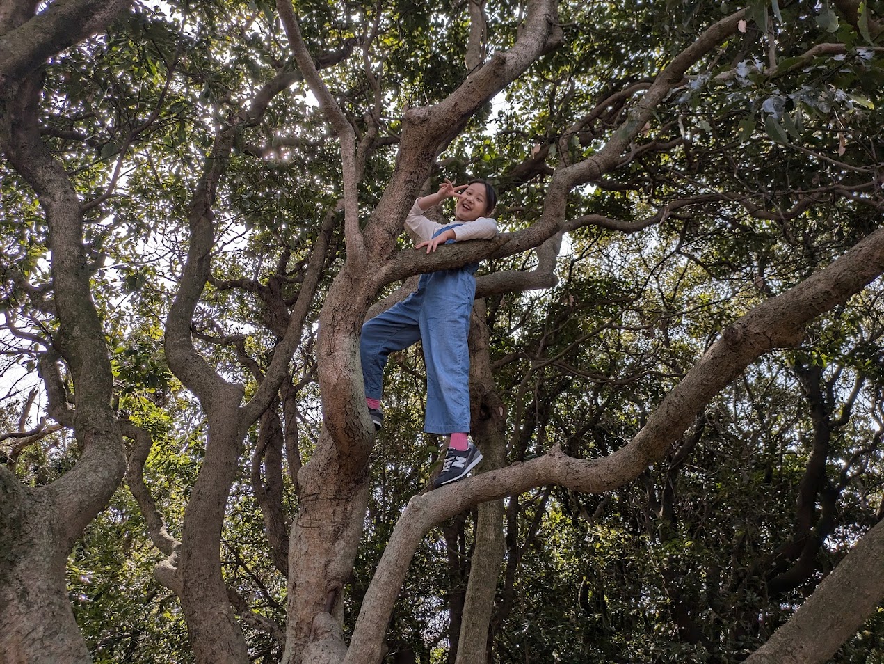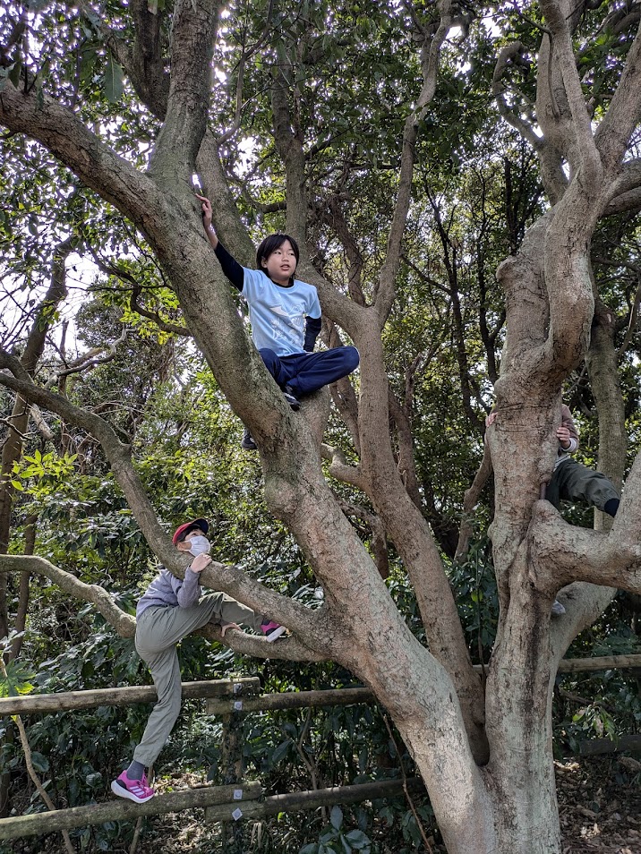 木登りはダイレクトに、樹を感じながら、対話しながら、登って降りていました^^