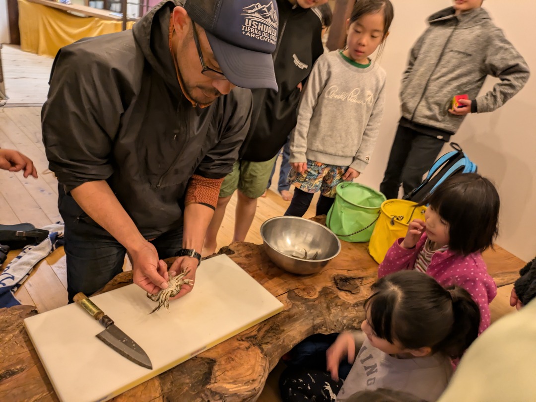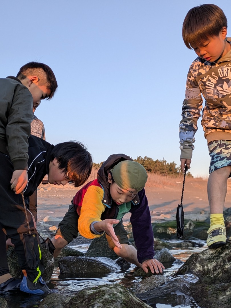 今日の「葉山キッズschool:木曜クラス」は、モクズガニをつかまえて味噌汁でいただきました!
