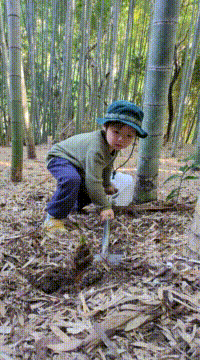 【Pre】タケノコを掘ったぞ~!2025-04-09今日からスタートの「Pre」。木古庭の竹林でタケノコを掘りました! ビジターセンターに集合。自己紹介をして、出発。 木古庭の竹林。 掘り方を説明。 自由に探して、頑張って掘ります! みんな掘れたので、竹を切ってすべり台遊び。 また来週!