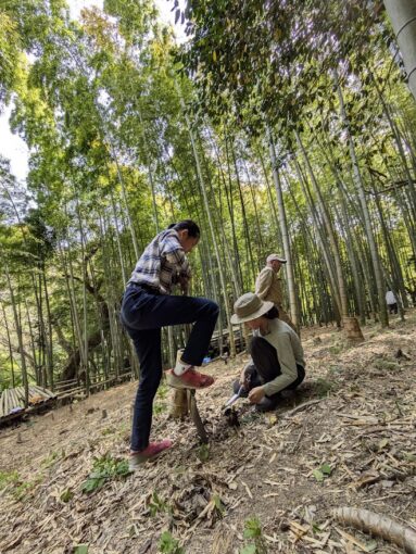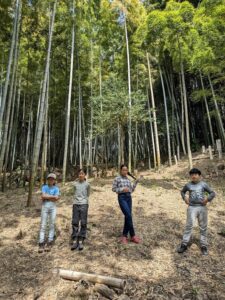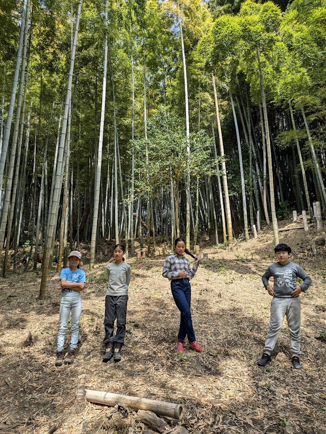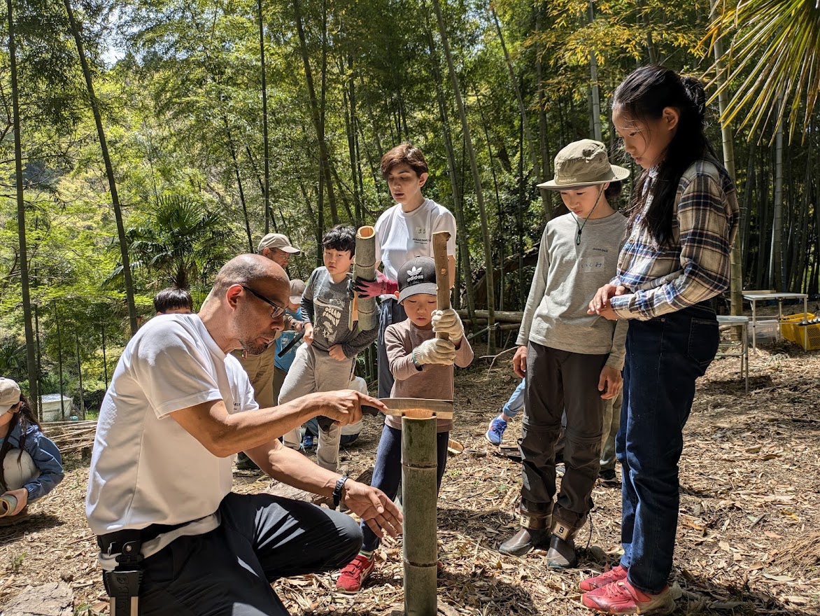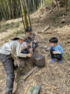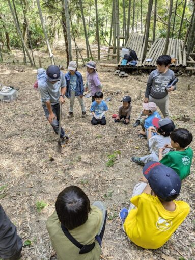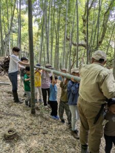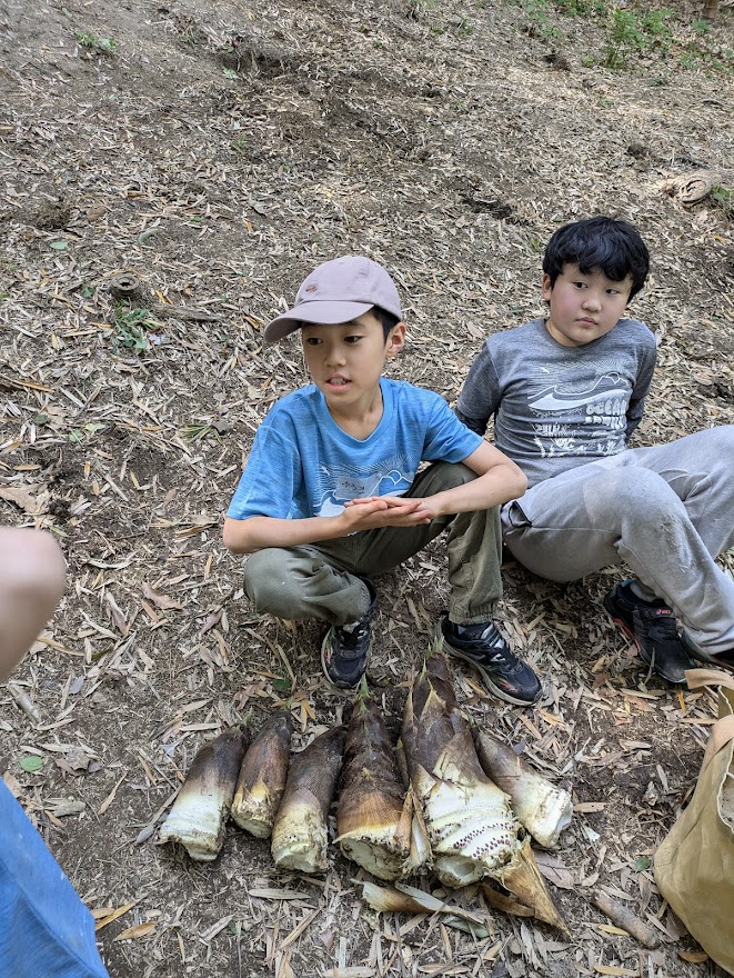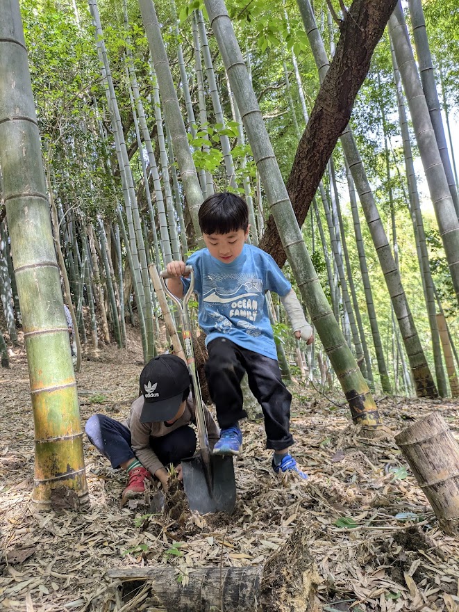 午後は、タケノコ掘り!ヅッキーのデモンストレーション、みんな真剣に見ていました!