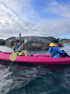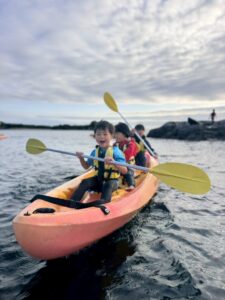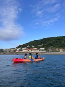 【葉山キッズ:木曜】シーカヤック!2025-05-08今日の「葉山キッズschool:木曜クラス」は、シーカヤックを漕ぎました! ビジターセンターに集合。 長者ヶ崎海岸。 初めて漕ぐ子は、感覚をつかみやすい一人乗りで練習。 3人チームになり、エビ島のまわりを自由に漕ぎます。 希望者は上陸し、飛び込み。 風が強く、寒い子もいたので早めに戻ります。 寒い子は早めに戻り、希望者は一人乗り。 また来週!