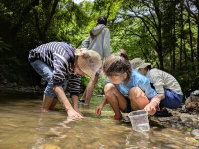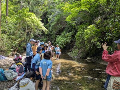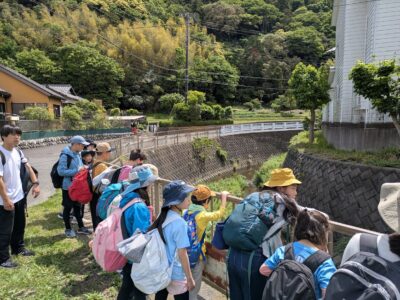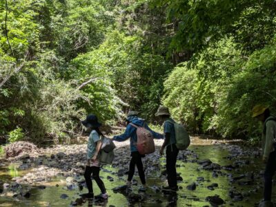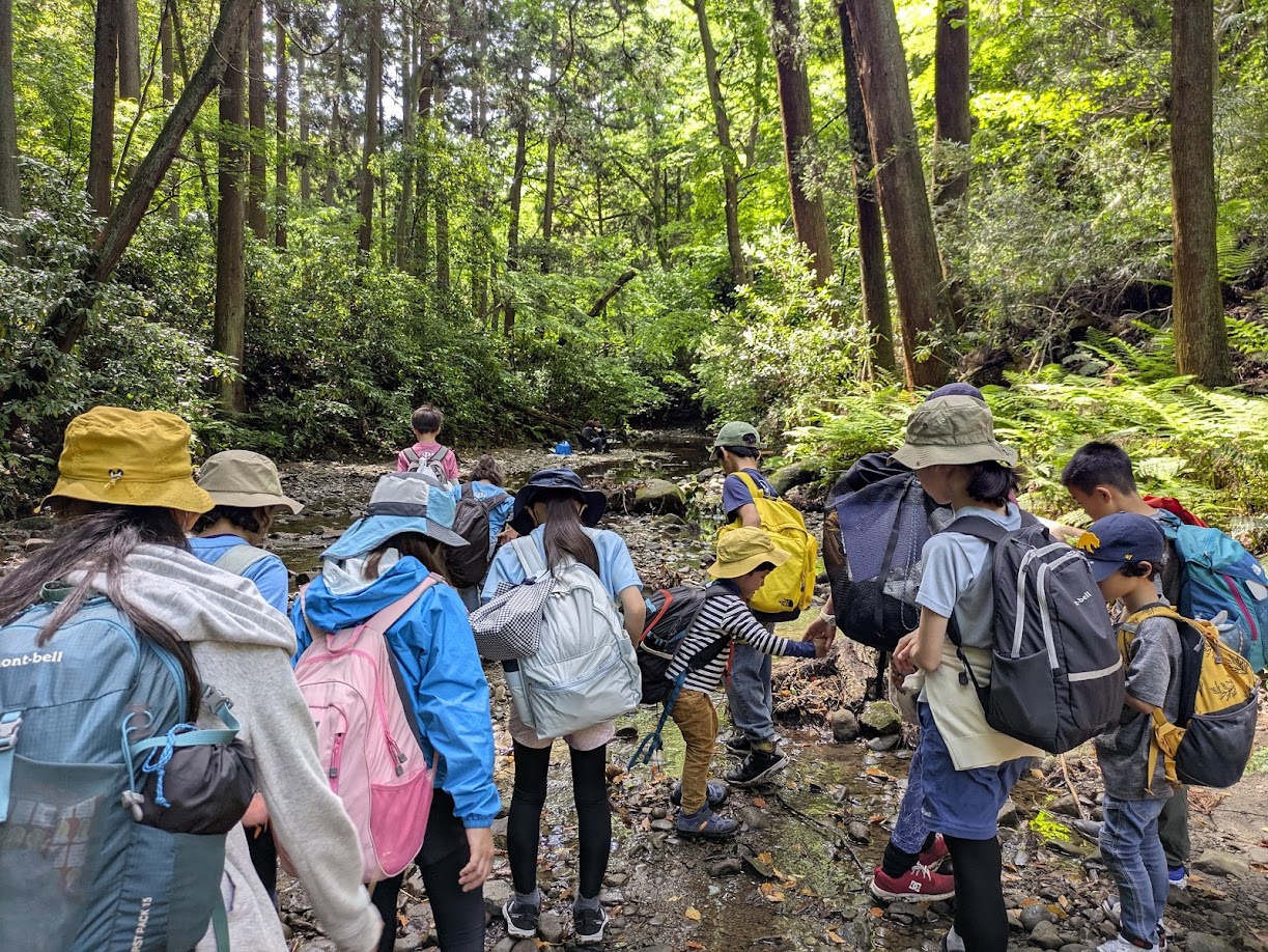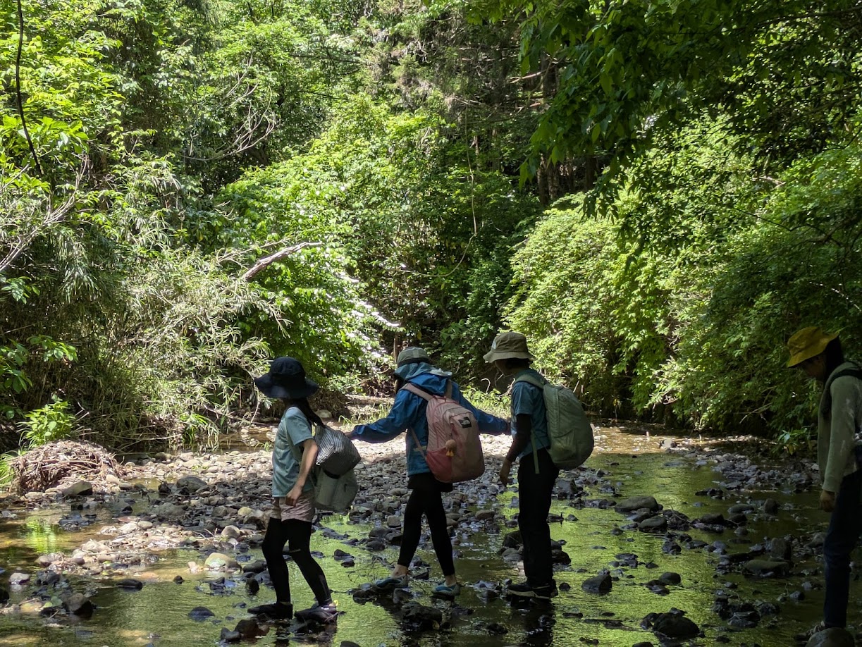 集合場所から川をさかのぼるように、川の上流域へと向かいます。
