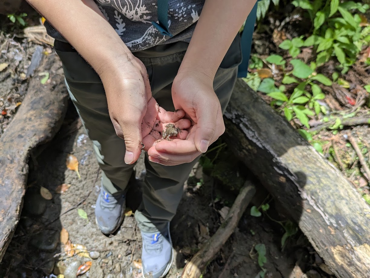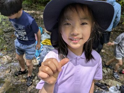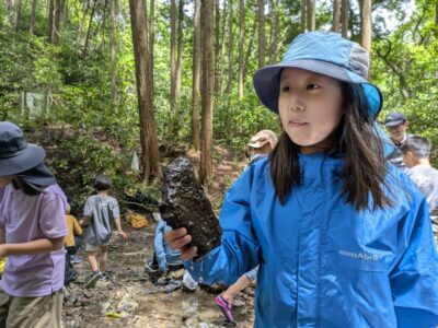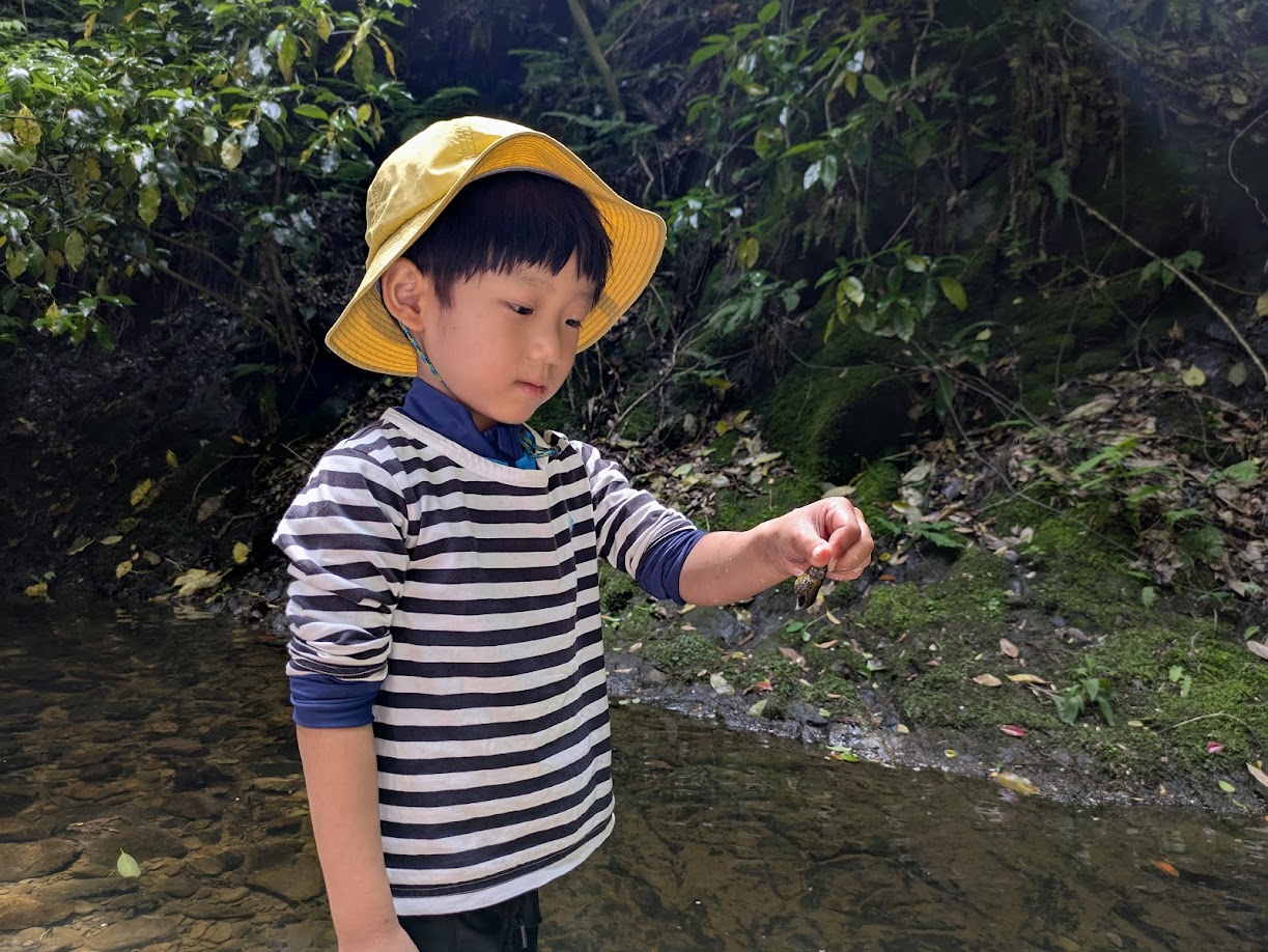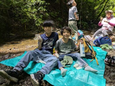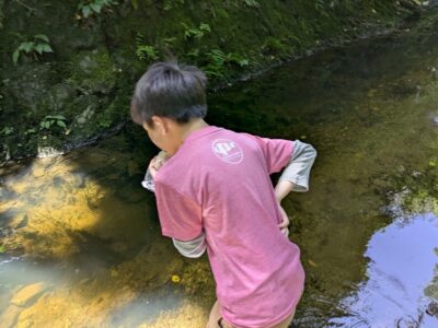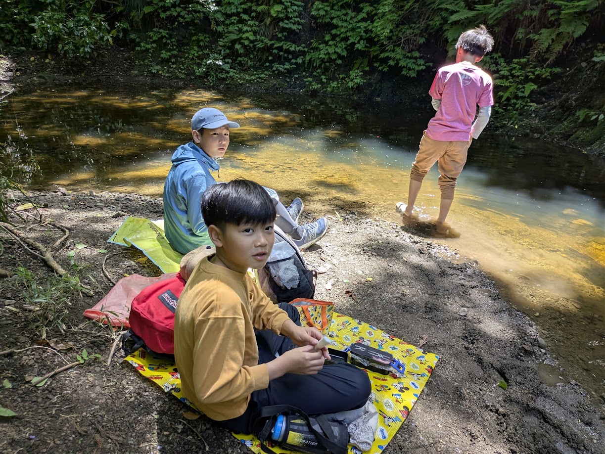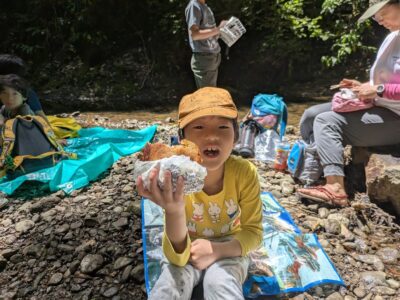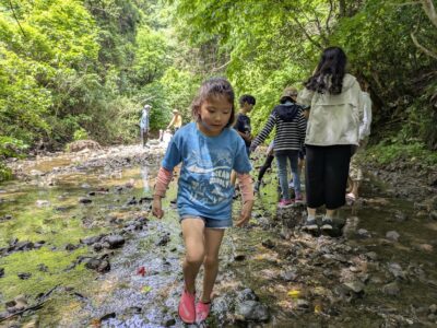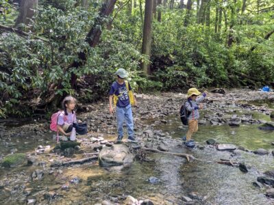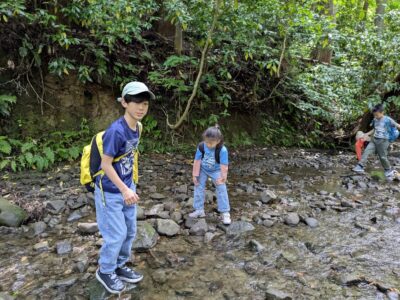 今日は、子ども達と一緒にいい感じの河原をさがしながら、森を探検しました。