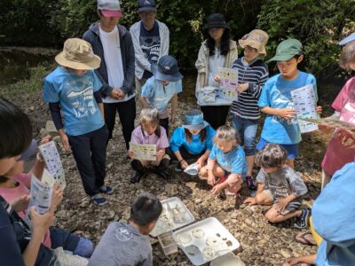 最後に、みんなで、どんな生き物が見つかったか、見せ合いっこ。