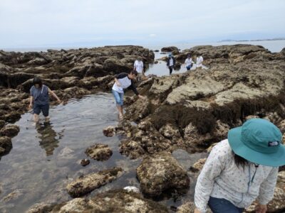 【おとなの部】磯の生き物観察!2025-05-14今日は大潮!ビジターセンターから歩いてすぐの小磯で「磯の生き物観察」を行いました。参加者の皆さんは、初めて見るヒトデやウミウシ、初めて触るウニやカニなどに大興奮!童心に戻って生き物とのひと時を楽しみました!磯ってやっぱり面白い!生き物ってやっぱり不思議でミラクル! 来週のおとなの部はスノーケリングです!お楽しみに!