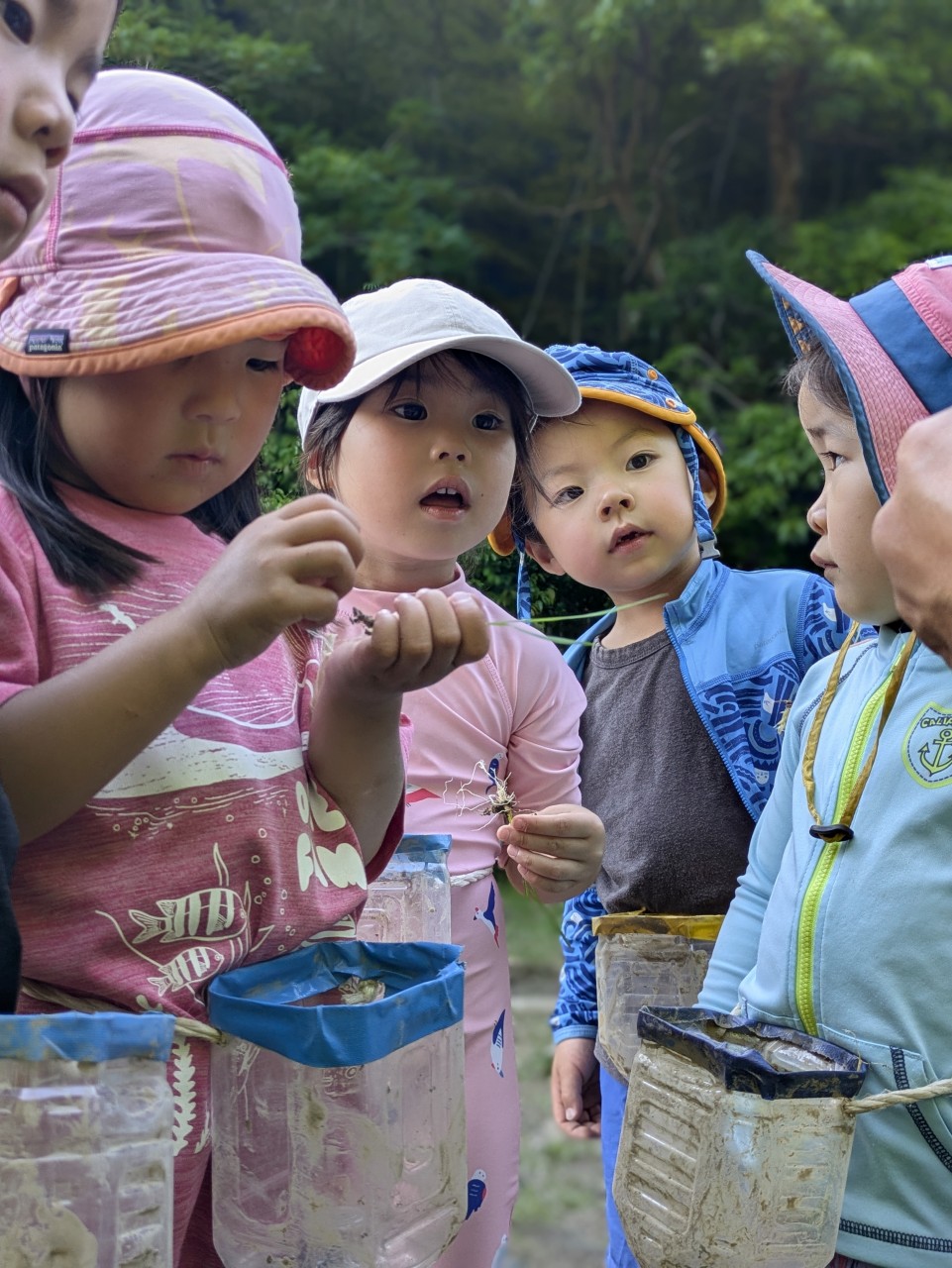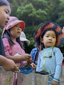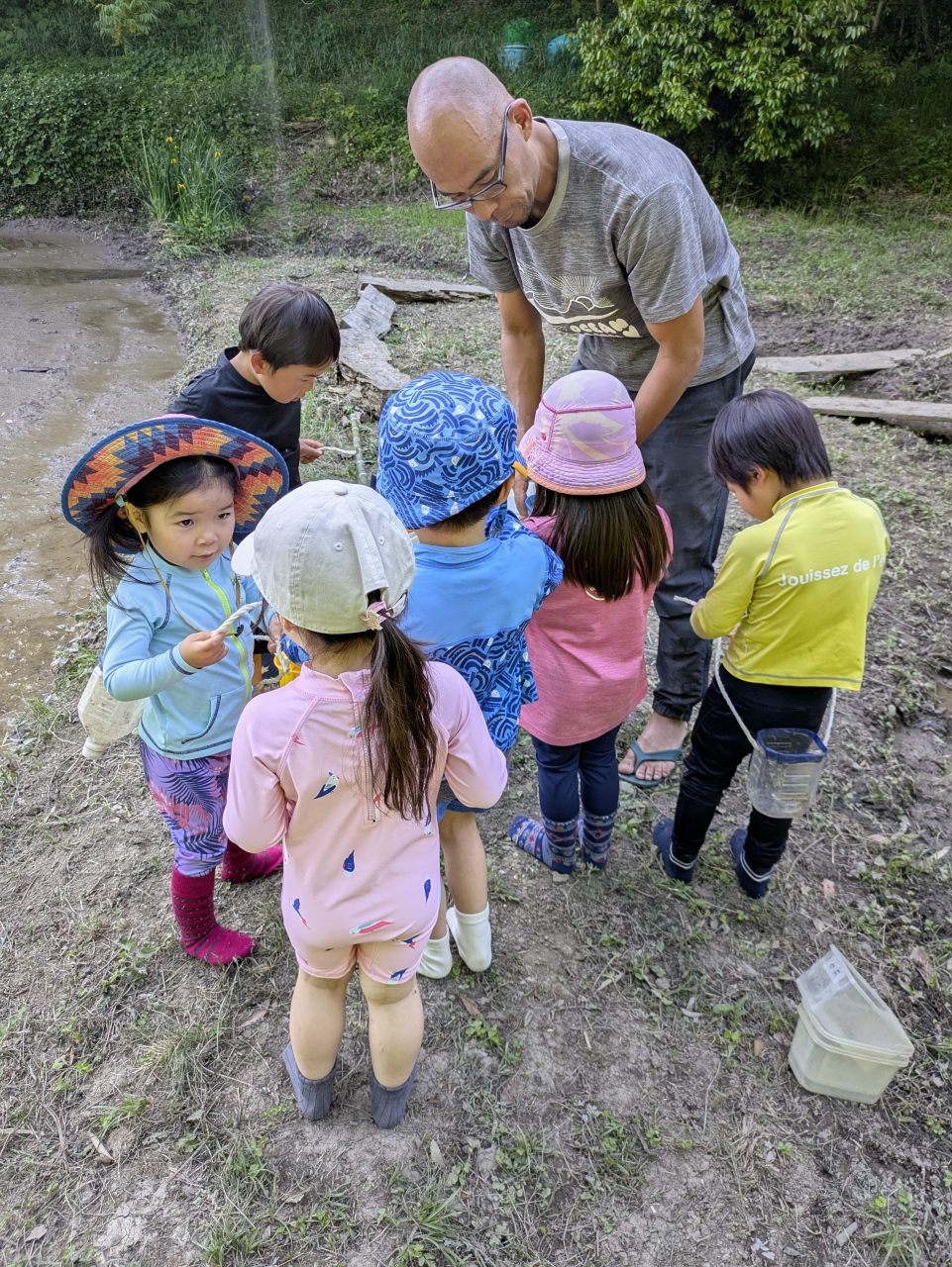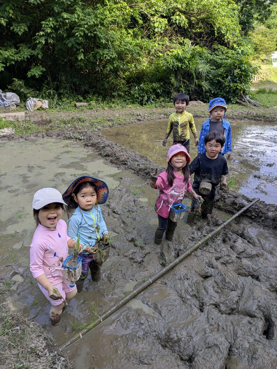 【Pre】田植えをしたぞ~!2025-05-28今日の「Pre」は、田植えをしました! ハイエースで出発。 木古庭の田んぼに到着。 苗の入れ物を腰に結びます。 稲の苗を一本ずつくばり、お米から根っこと茎がでてるのを観察。 もみ殻に包まれている茶色の米つぶと普段食べている白いご飯がすぐにはつながらない様子でしたが、もみ殻をつぶすと白い米がでてきて、みんな納得していました。 おそるおそる田んぼに入って、田植えスタート! 最後は生きものさがし。 温水シャワーをおかりして泥を落とし、着替えて帰ります。 また来週!
