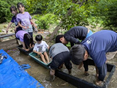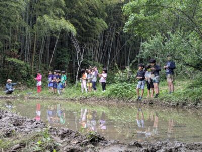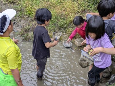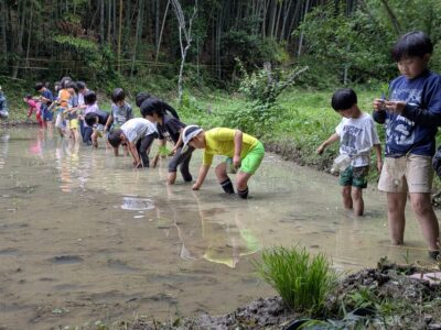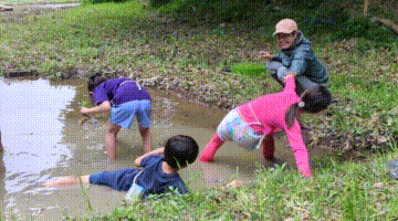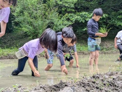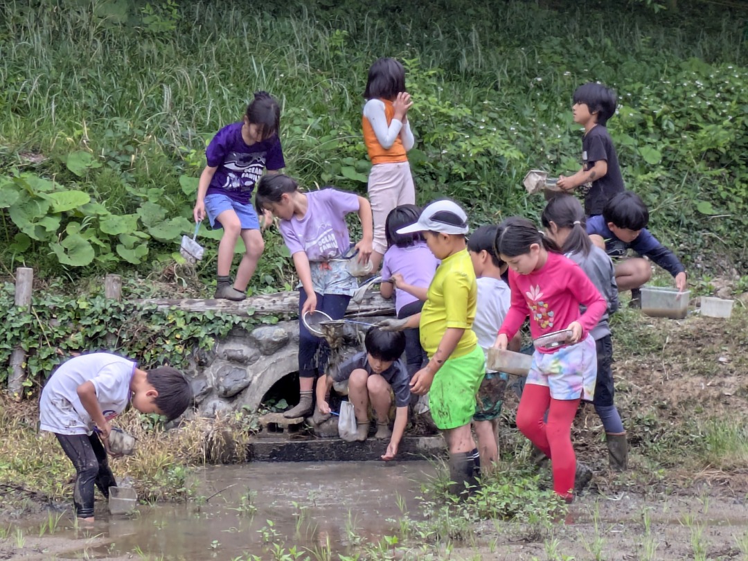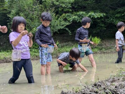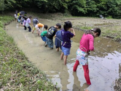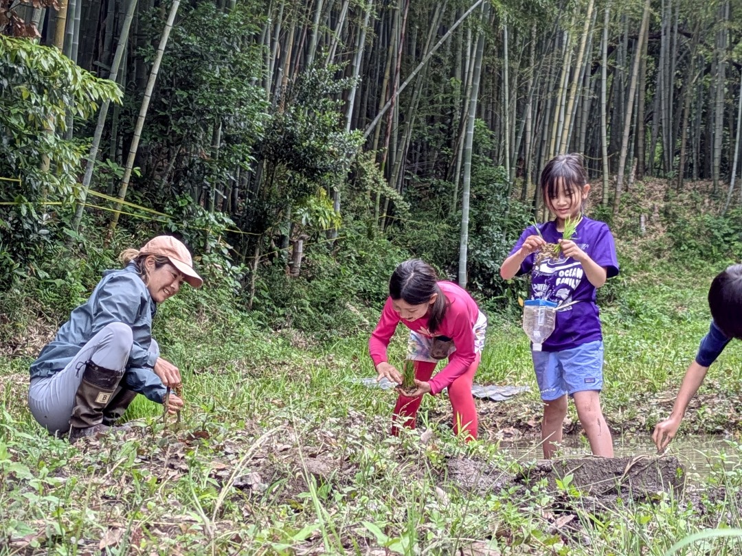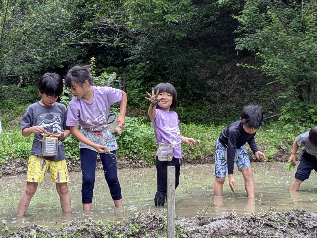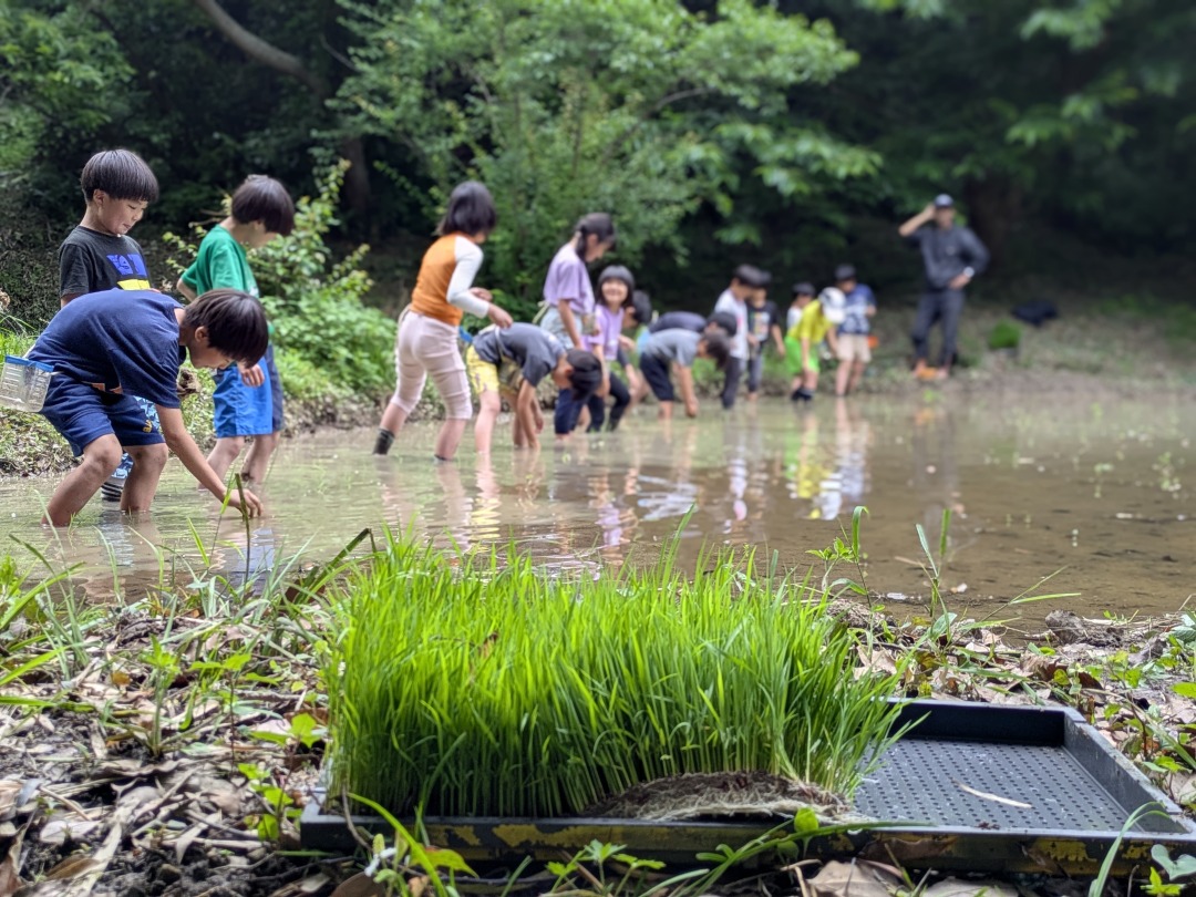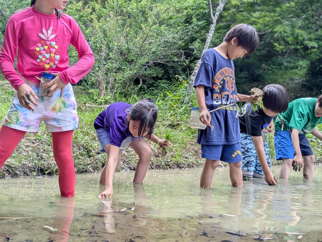 【葉山キッズ:木曜】田植え!2025-05-29今日の「葉山キッズschool:木曜クラス」は、田植えを行いました! 木古庭の田んぼに集合。 イノシシの罠を見学。 田植えのガイダンスをして、おそるおそる田んぼへ。 苗がなくなったら、スロー&キャッチ! 田植えが終わったら、生きものさがし。 お湯をおかりして、泥を落として解散。 また来週!