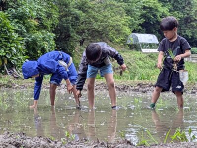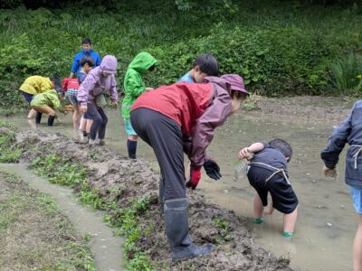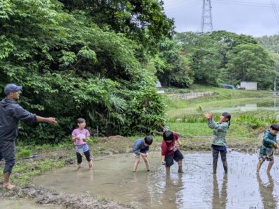 【葉山キッズ:金曜】田植え!2025-05-30今日の「葉山キッズschool:金曜クラス」は、田植えを行いました! 木古庭の田んぼに集合。 田植えのガイダンスをして、おそるおそる田んぼへ。 苗がなくなったら、スロー&キャッチ! 田植えが終わったら、自由タイム。 お湯をおかりして、泥を落として解散。 また来週!