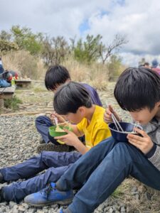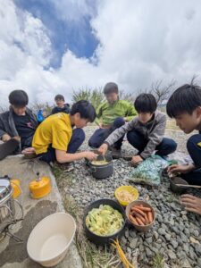 昼食のラーメンをみんなで作ります。