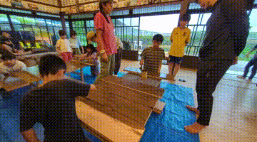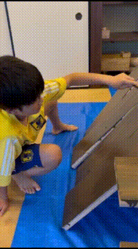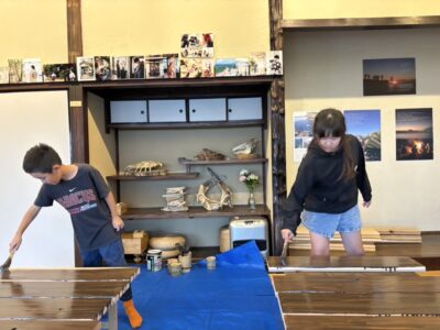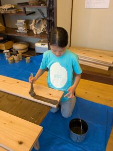 ボロボロになってきた下駄箱を新しく作るため、板に色を塗ります。